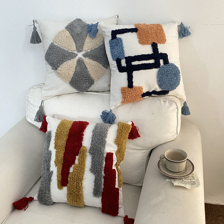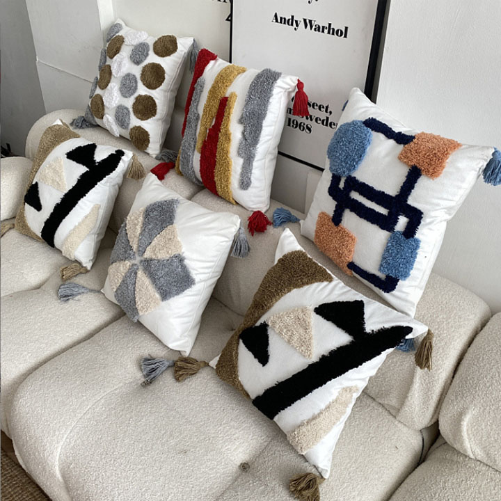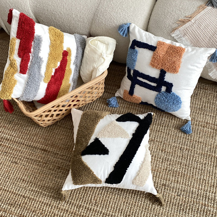 コットン クッションカバー 北欧 45x45 綿100% ポへミア おしゃれ シンプル 正方形 通気 丸洗いOK 汚れ防止 高級感 45*45 クッションカバーのみ クッション カバー 単品販売
