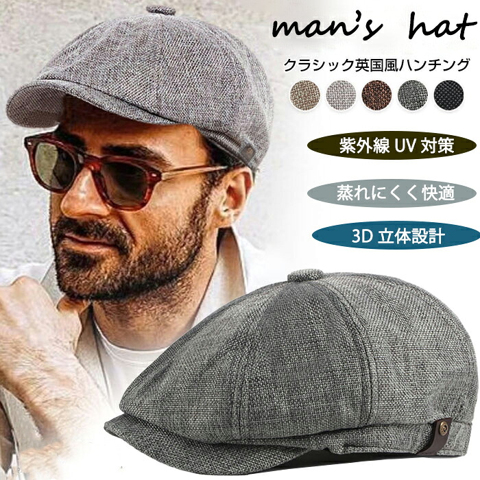 ハンチング メンズ 帽子 ゴルフ メンズ ハンチング 夏 リネン メンズ キャスケット キャップ サマーキャップ クラシック英国風 紳士帽子 3D立体 軽量 通気 UVカット 春夏 人気 父の日 贈り物 プレゼント