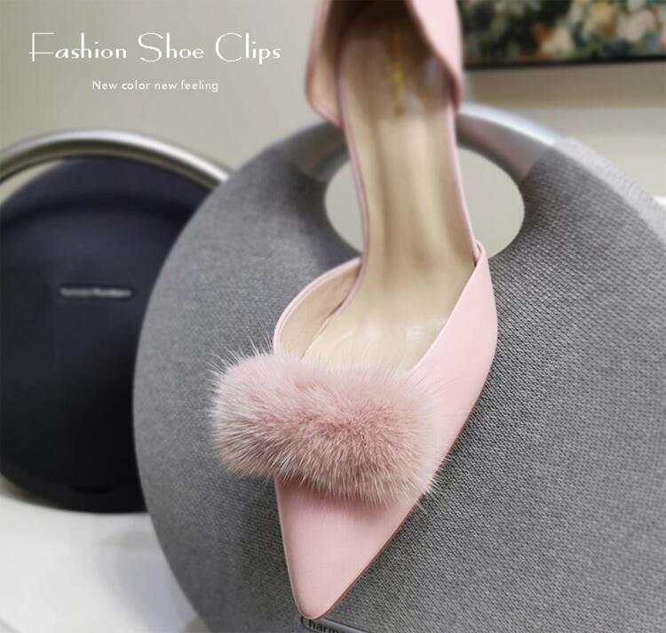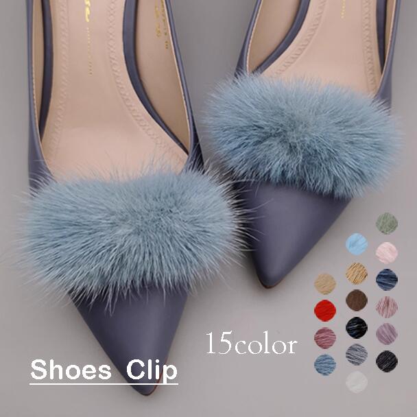ふわふわファーのシューズクリップ 1ペ 靴 豊富 PK WT GY BK CF TS FL WL OZ RD MS WR PL ZQ HG