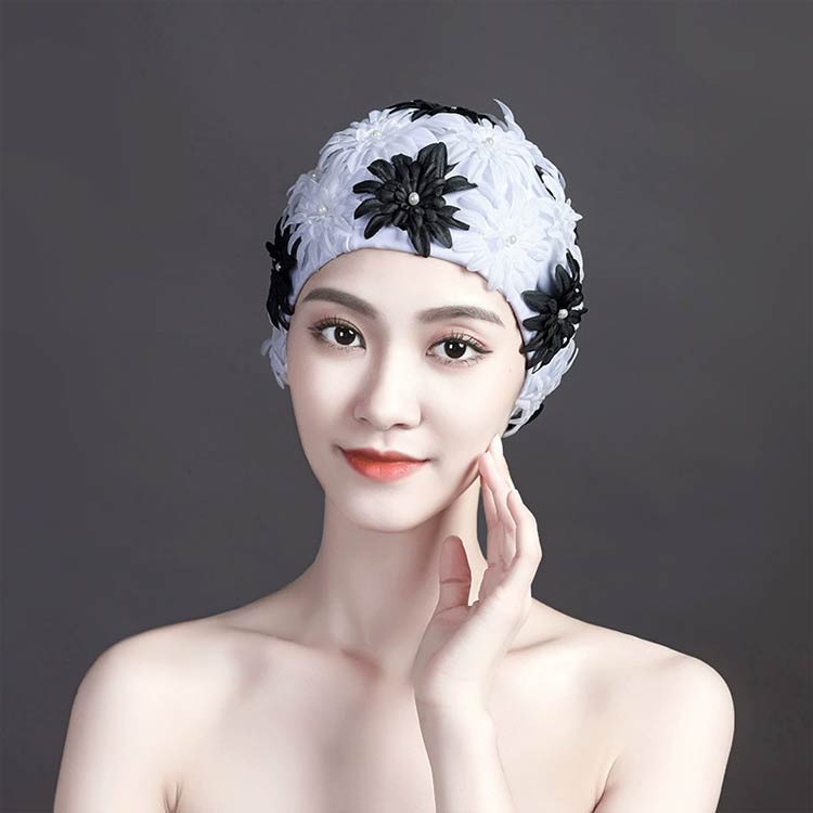フラワースイムキャップ スイムキャップ レディース 水泳帽 立体フラワー 花びら パール 防水 スイミングキャップ ロングヘア対応 ゆったり 速乾 水着帽子 海水浴 温泉 水遊び 競泳 水泳練 プール