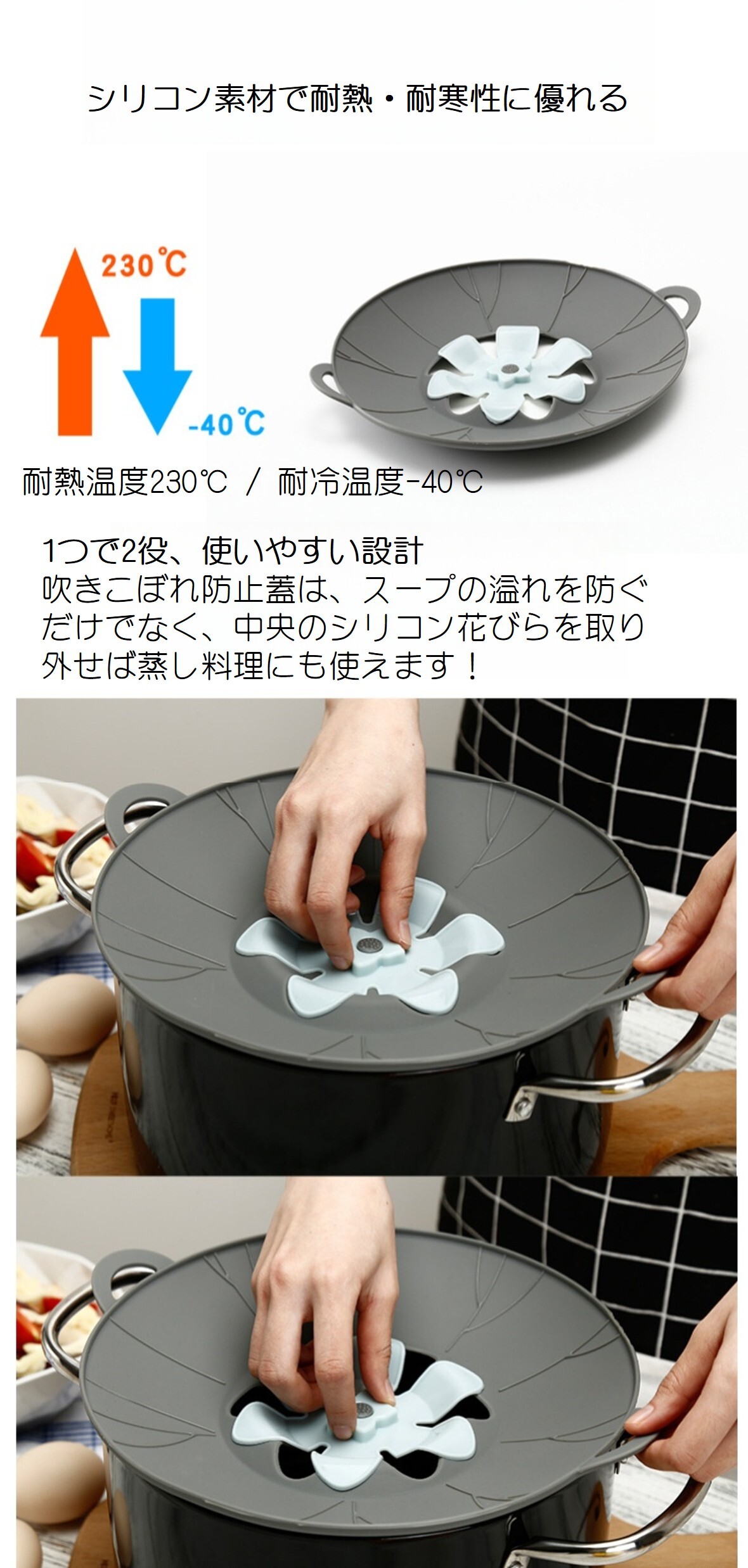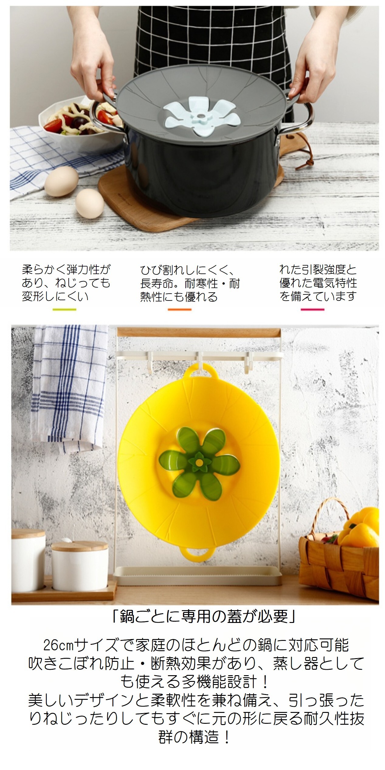 鍋蓋 吹きこぼれ 防止 シリコーン シ 23cm 26cm 29cm イエロー グレー