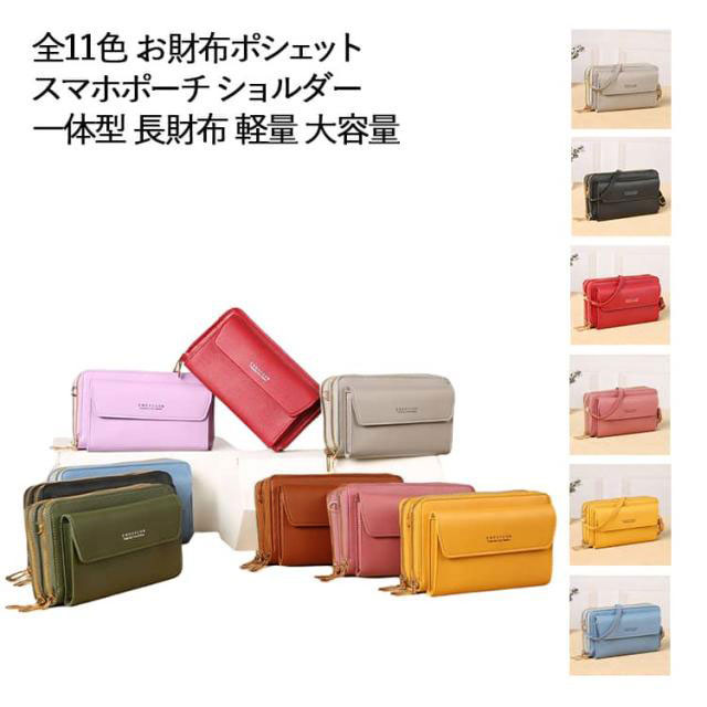 お財布ポシェット 全11色 ショルダー お財布 大容量 ショルダーバッグ スマホ 財布 スマホポーチ 一体型 長財布 軽量 スマホショルダー