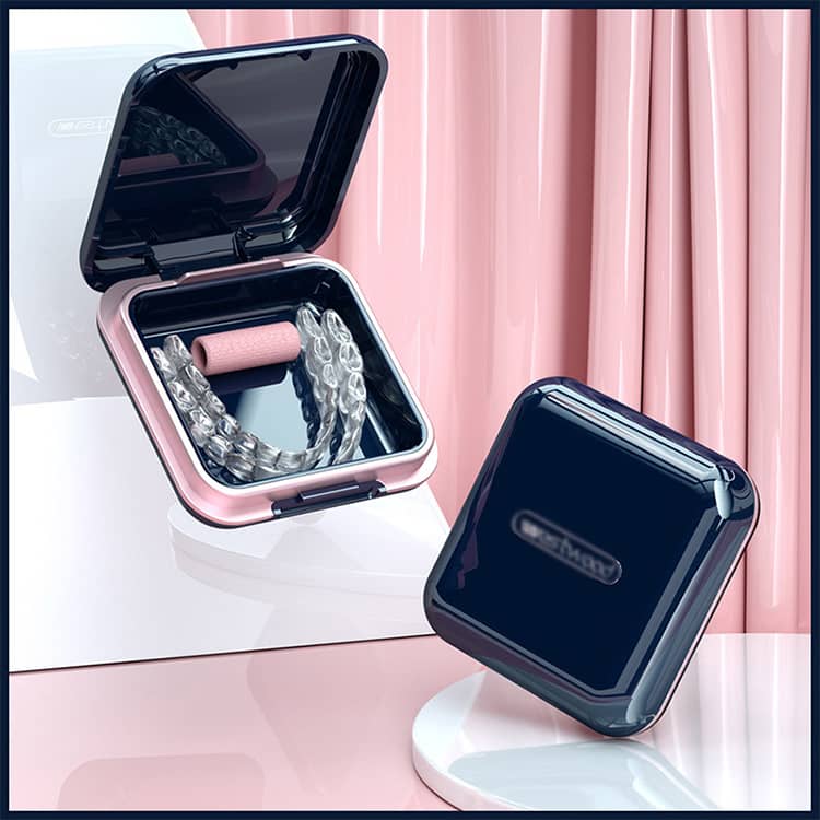 使いやすいサイズの鏡がケースに付いているので外出先などでのマウスピースの取り外しにもとっても便利!
