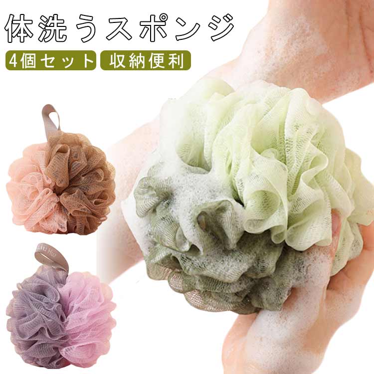 シャボンボール 4個セット ボディタオル 吊り下げ収納 体洗うスポンジ お風呂 ボディスポンジ 豊富な泡 伸縮性 泡立てネット 泡立ち ボディウォッシュボール バス ボディケア 使いやすい