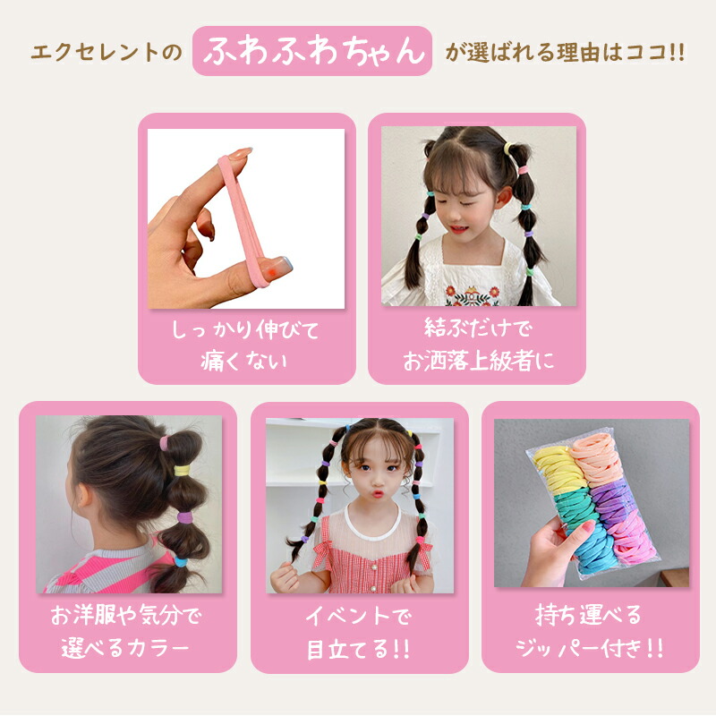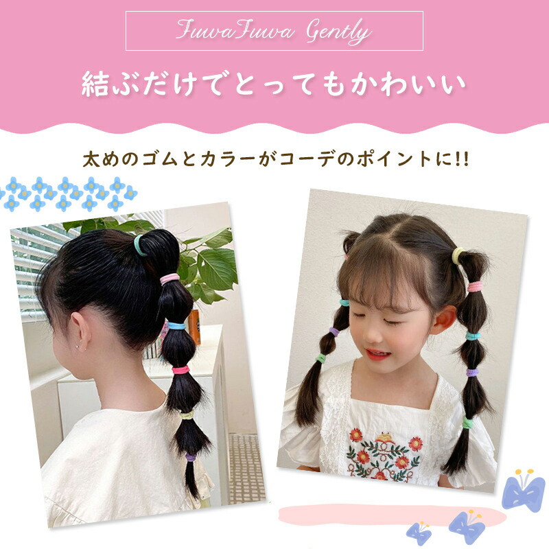 ヘアゴム キッズ 96本セット ふわふわ 太め 子供 ジャージ ゴム 夏 パステル カラフル こども 可愛い かわいい おしゃれ 運動会 痛くない 太い 蛍光 小学生 幼稚園 保育園 跡がつきにくい