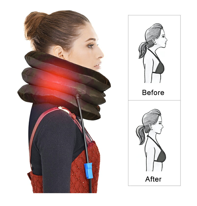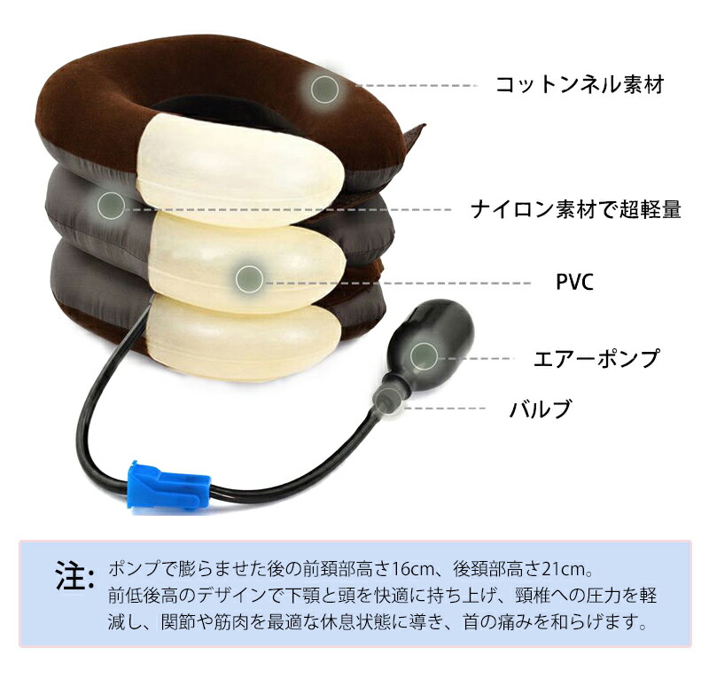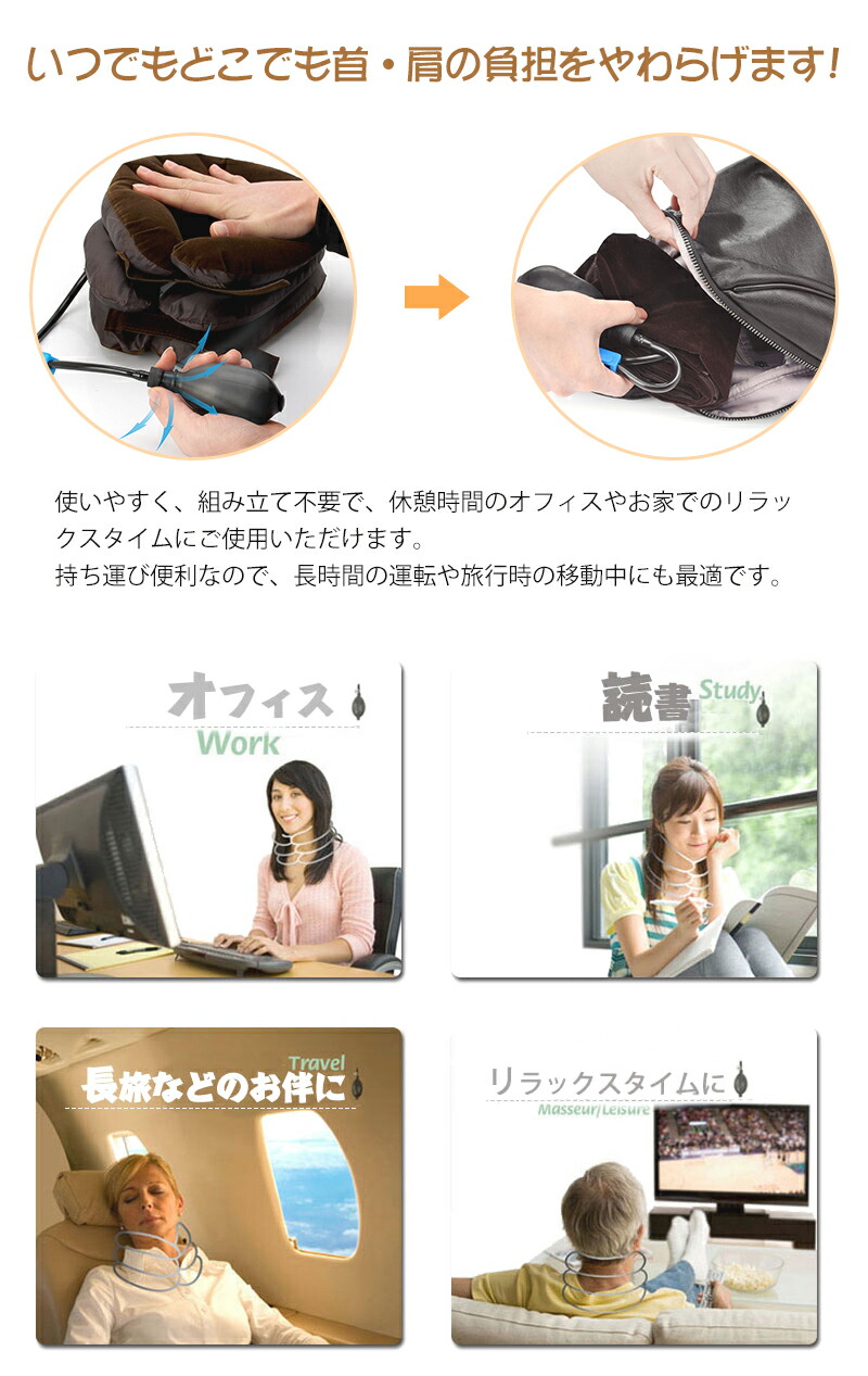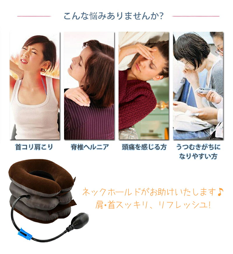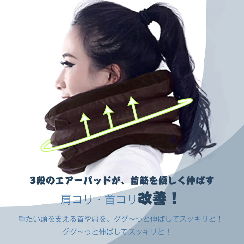 ネックストレッチャー ネック ホールド ストレッチャー 軽量 手動ポンプ式 高さ調節 使いやすい 3段階エアーパッド 首 コルセット サポーター 背筋が伸びる 首こり 肩こり 旅行 会社 機内 解消