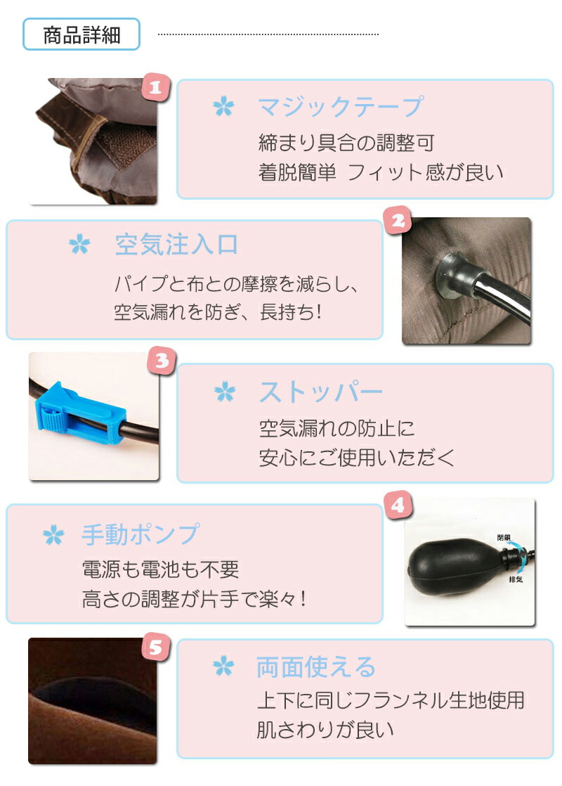 ・お子様への使用はお控えください。 ・空気を入れて使用中の間は、できるだけ首は動かさないようにしてください。