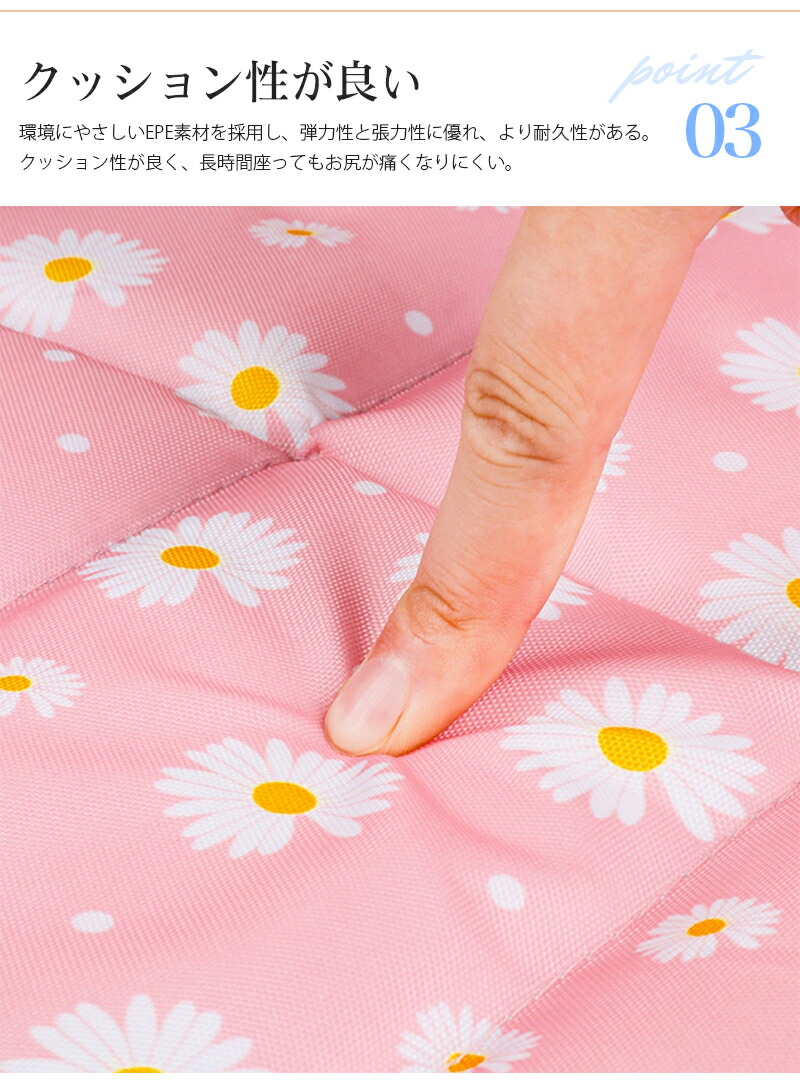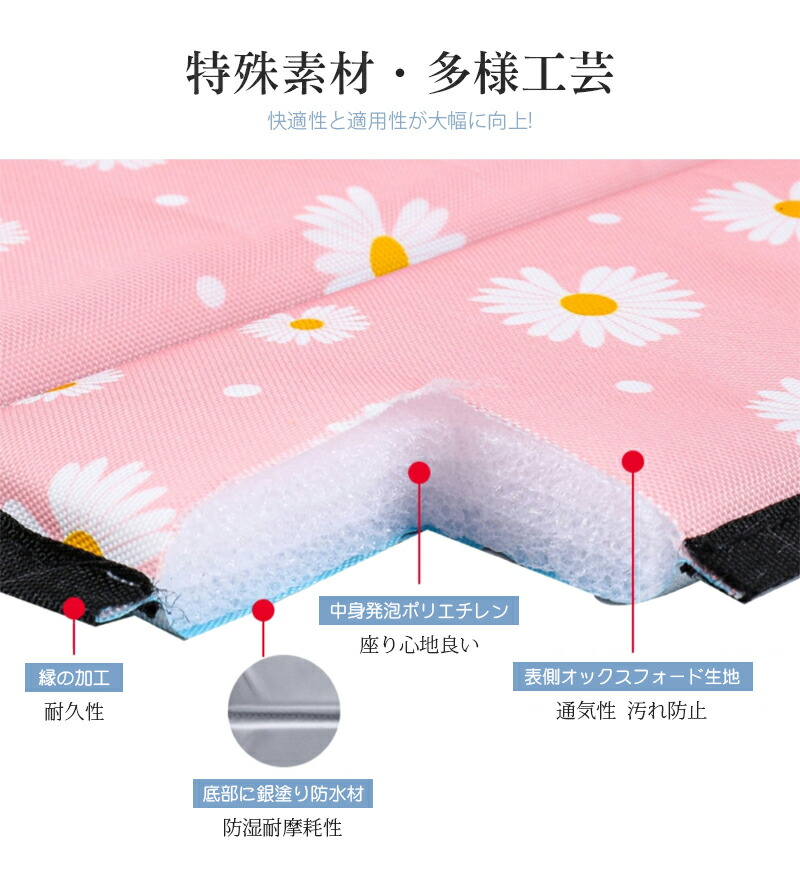 【優れた撥水性・断熱性】地面からの冷たさや熱を遮断しますのでお花見やバーベキュー、ピクニック、登山などで大活躍!公園のベンチやスタジアムのシートにそのまま座るのには抵抗がある方におすすめのアイテムです。軽くてコンパクトに折り畳めるのでソロで携行品を軽くしたい方にもおすすめです。お尻に冷気をシャットアウト。