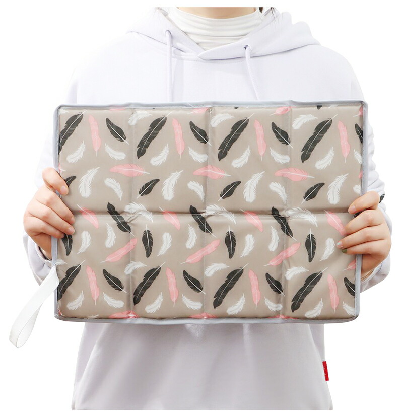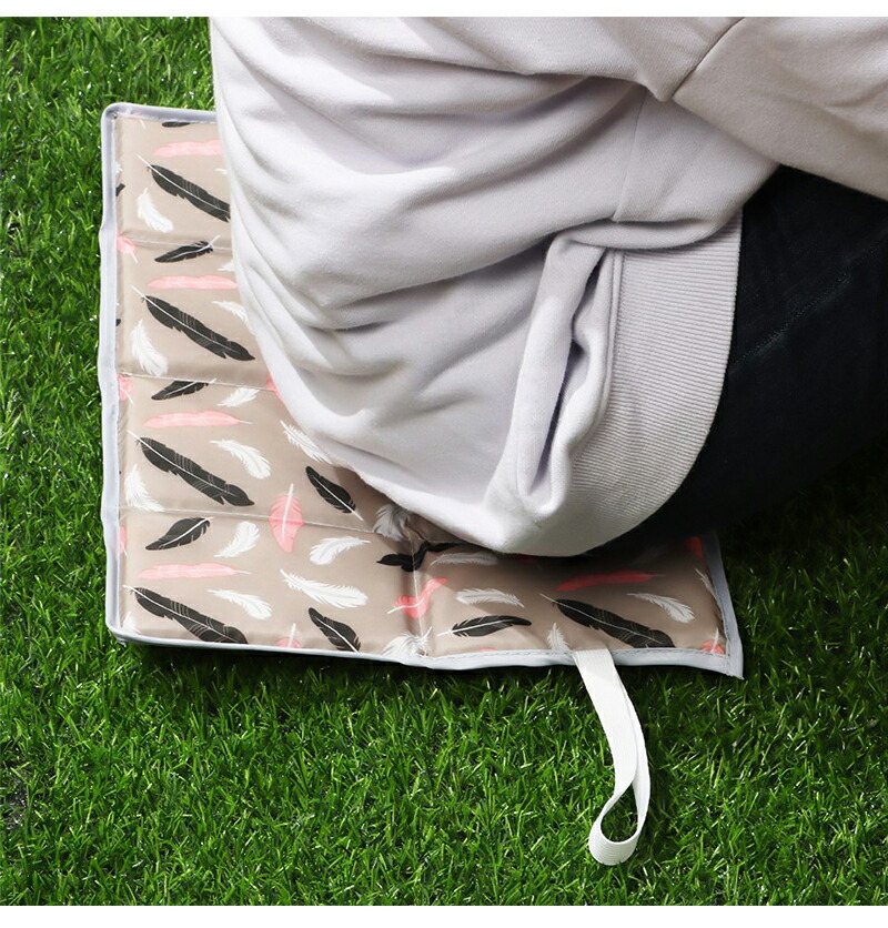 【商品内容】素材:ポリエステル、発泡ポリエチレン、ゴム サイズ:約10×14×8cm(折り畳んだ状態) 約40×30×1cm(広げた状態) 厚み:約1cm 重さ:約40g ※生産時期により、クッションの厚みが異なる場合がございます、予めご理解ご了承ください。