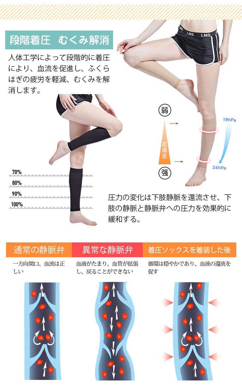 着圧ソックス ふくらはぎ サポーター 加圧インナー 引き締め ソックス 足引き締め ふくらはぎケア ちゃくあつソックス 美脚メイク 靴下 疲労の解消 弾性ストッキング 就寝時 健康グッ スムースレッグ