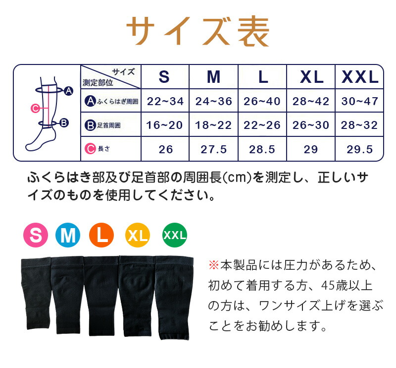 着圧ソックス ふくらはぎ サポーター ブラック ベージュ S M L XL XXL