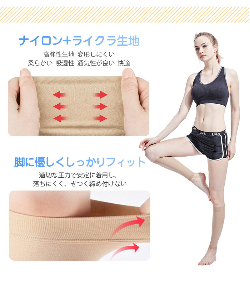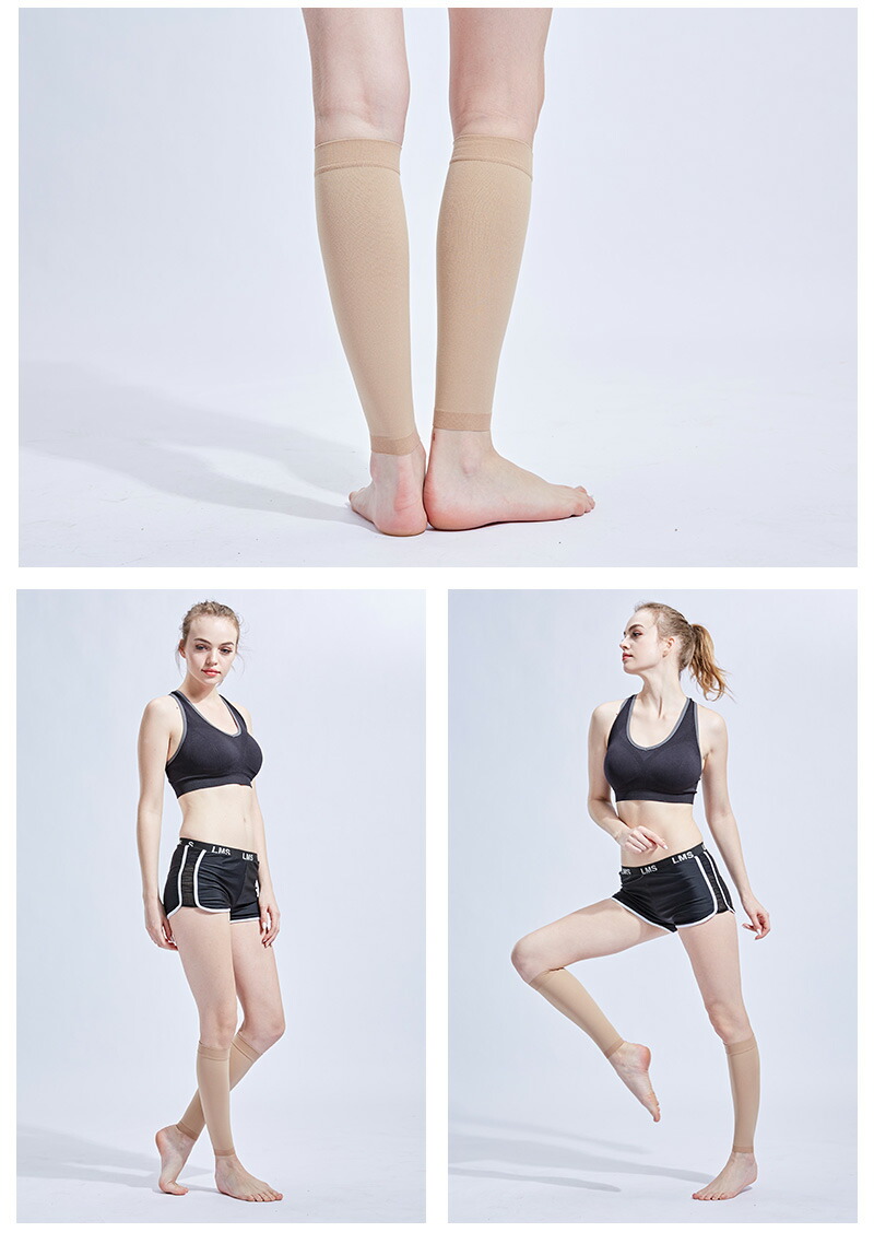 「美脚効果」こちらのふくらはぎサポーターを着用することで、むくみがなくなり、キュッと引き締まった美脚が実現します。贅肉の下垂を防いで腿の美観を保ちます。