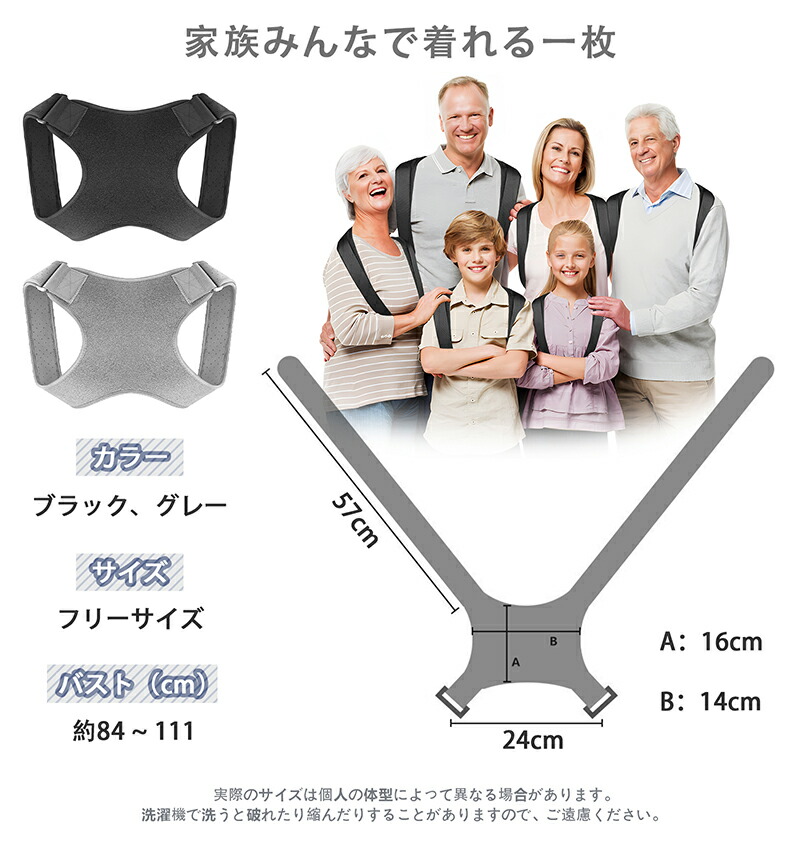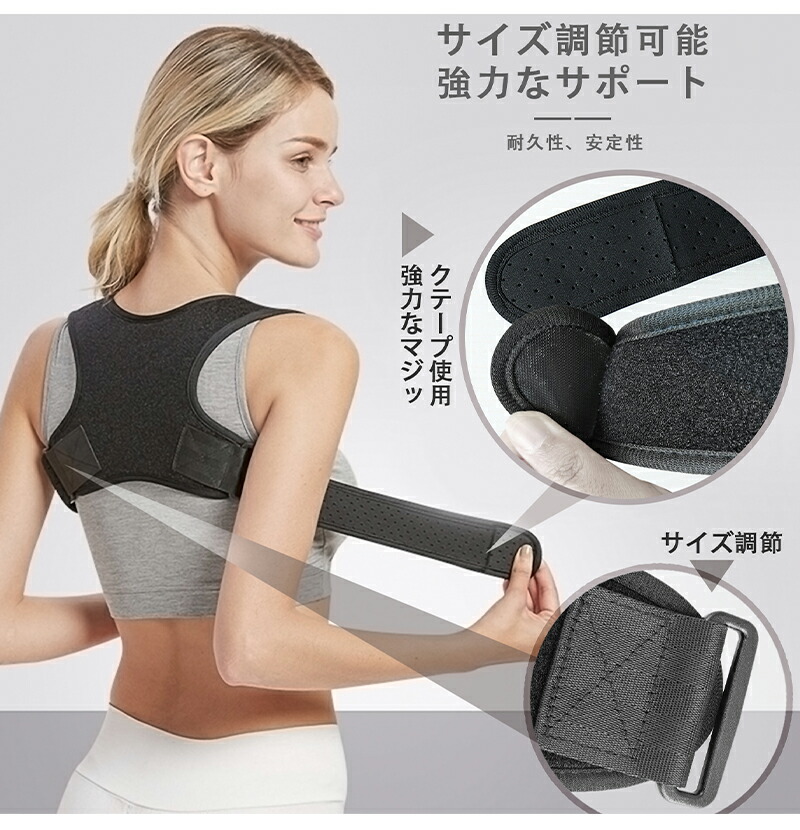 猫背矯正ベルト 肩甲骨サポ ブラック グレー