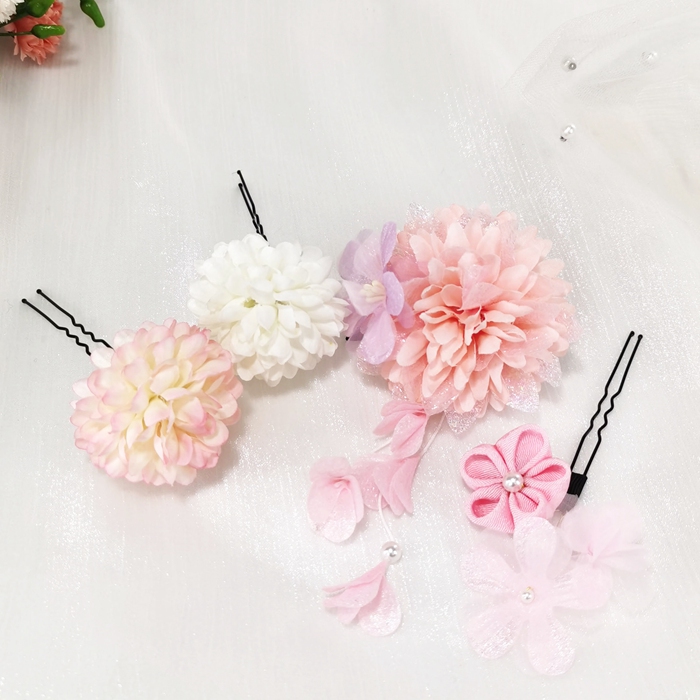 七五三 髪飾り 卒園式 子供 アクセサリー 4点セット ヘアアクセサリー女の子 3歳 キッズ 髪飾り女の子 7歳 パッチンピンお祭り成人式 卒業式 袴 着物 浴衣 ゆかた 祭り