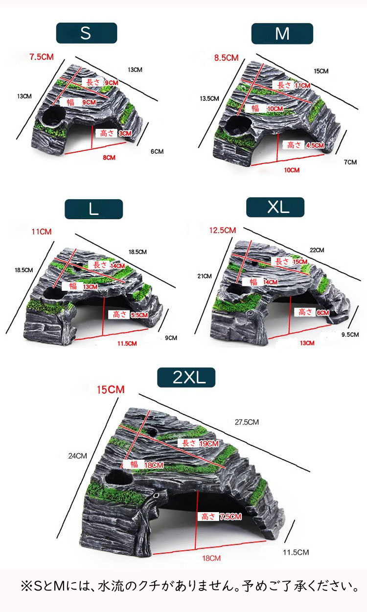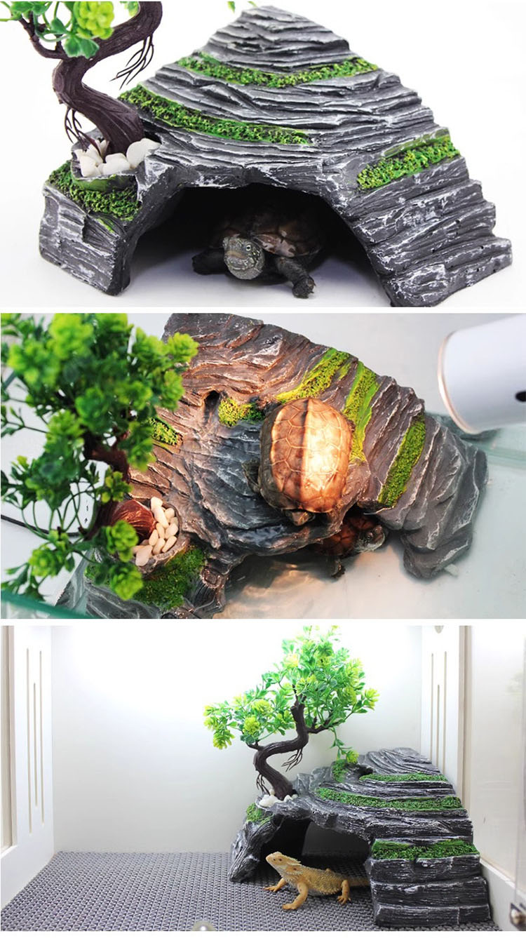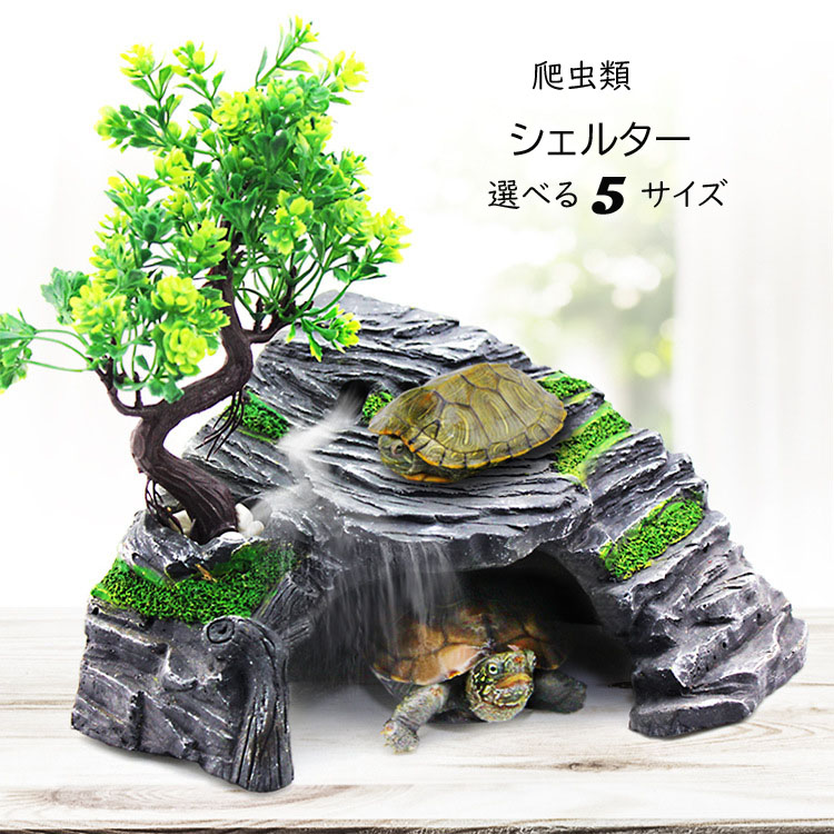 爬虫類 シェルター 隠れ家 5サイズ ハウス トンネル 洞窟 水流 亀 大きい 岩場 浮島 水槽 陸地 カメ イモリ リクガメ ケージ 階段 ロック インテリア かめ