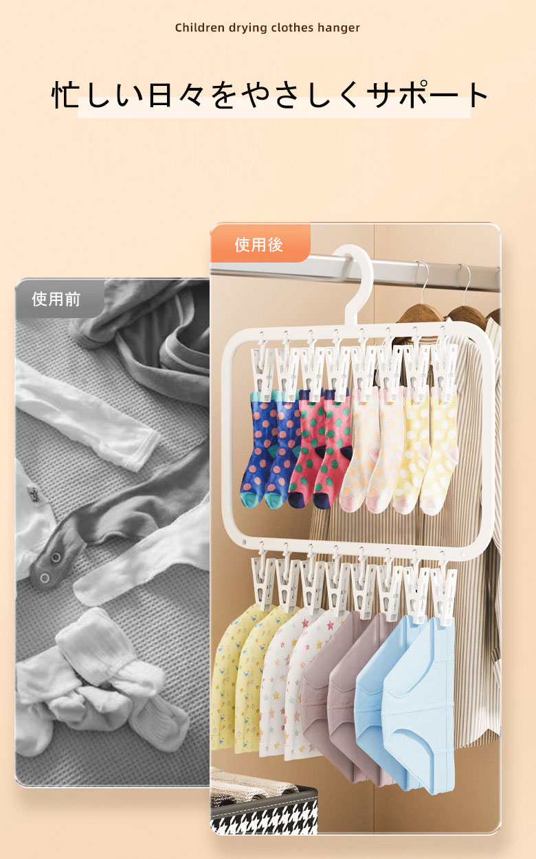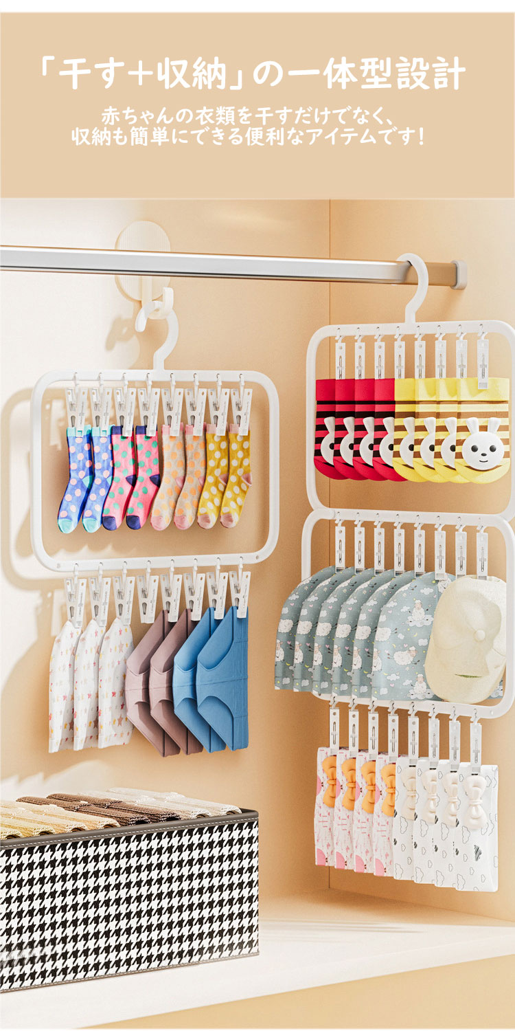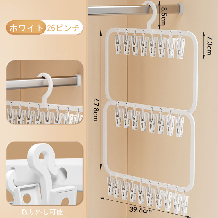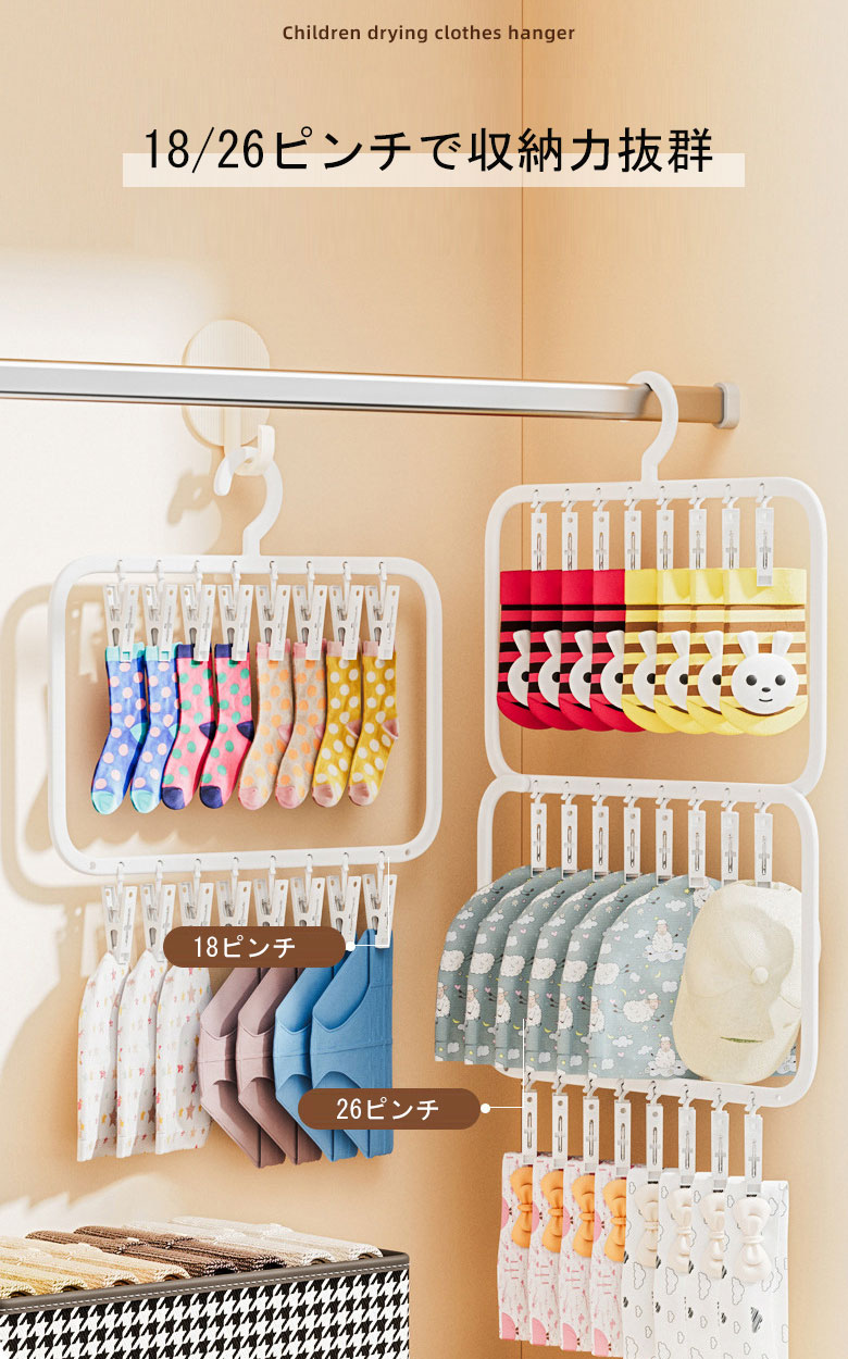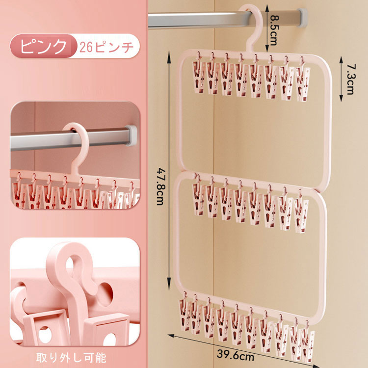 縦型ハンガー 下着 靴下 ベビースタイ 壁掛け 吊り下げ 収納 3段 26ピンチ 2段 18ピンチ ハンガー 子供用 ベビーハンガー プラスチックハンガー 物干しハンガー 洗濯ハンガー 20本セット