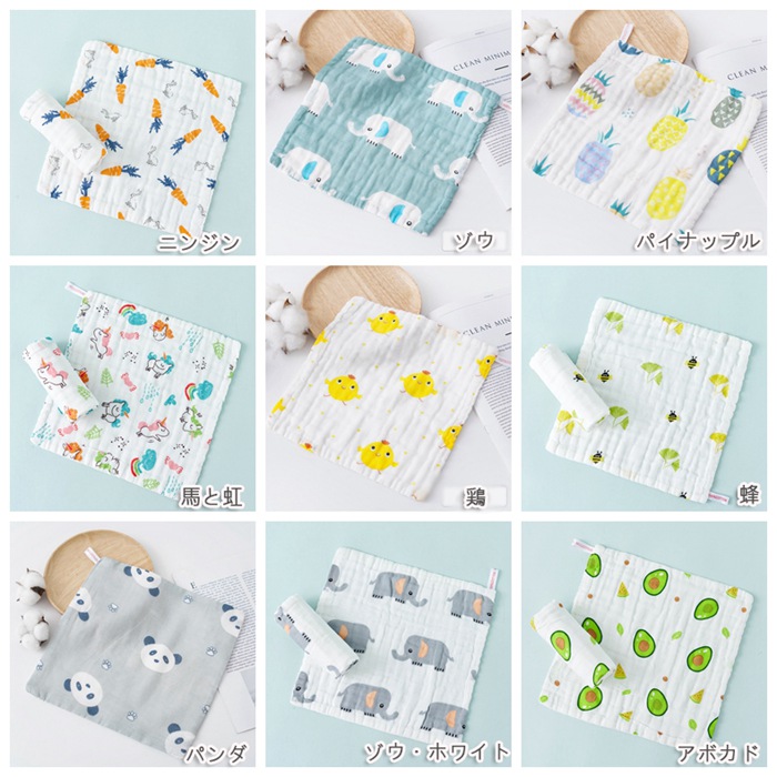 ※吸水性が良いタオルなので、赤ちゃんの口拭き、お子様の手拭き、キッチン廻りにも様々な用途で使いまわせる。