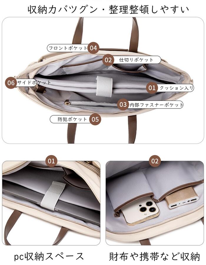 ビジネスバッグ PC収納 大容量 レデ バッグ レディースバッグ ビジネスバッグ ブリーフケース 人気 ベージュ 薄ピンク ブラック M L