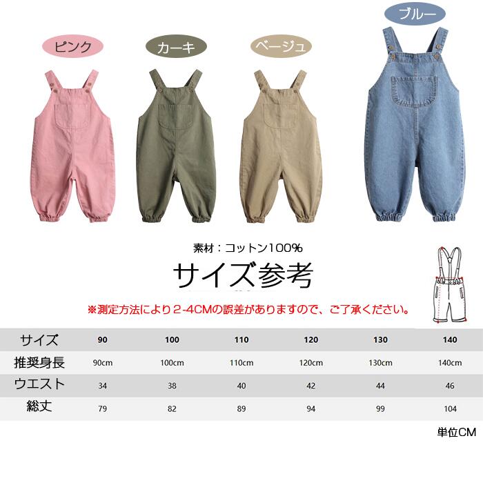 オーバーオール パンツ カジュアル デ キッズ オーバーオール 新登場! ピンク カーキ ベージュ 90cm 100cm 110cm 120cm 130cm 140cm