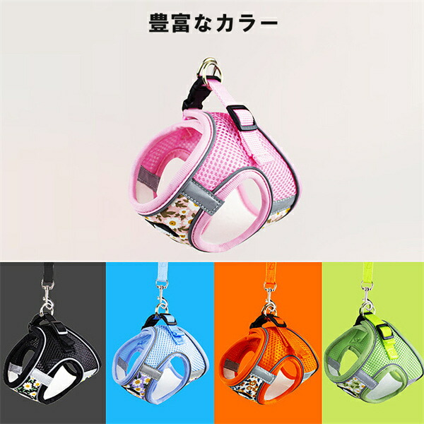 犬用ハーネスリードセット 5color 猫用品 首輪 ハーネス ハーネス 続々登場 ブルー ブラック グリーン ピンク オレンジ XS S M L XL