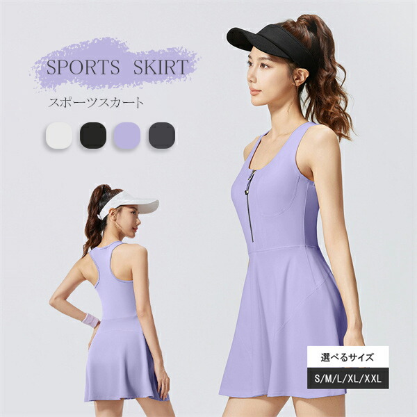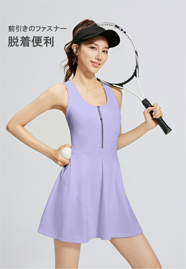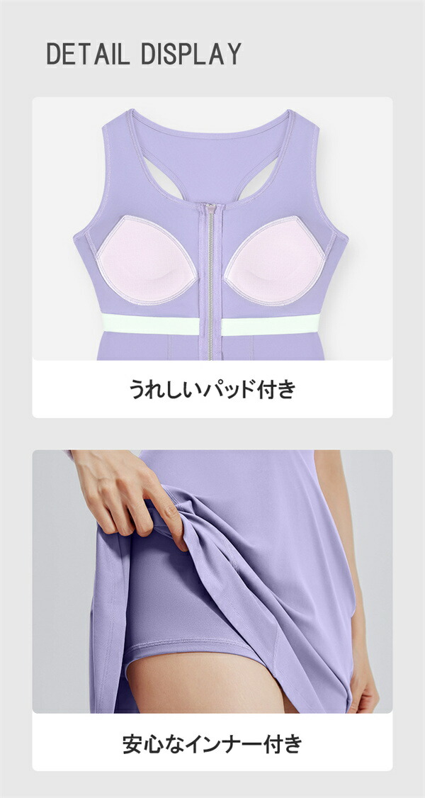 運動スカート 伸縮性抜群 吸汗 柔らかい 肌に優しい テニスワンピース テニスウェア ゴルフワンピース ゴルフウエア スポーツウェア レディース テニス ゴルフ トレーニング 運動着 お インナー付き
