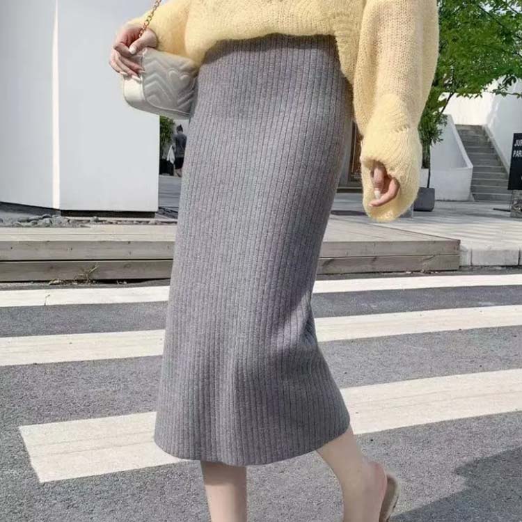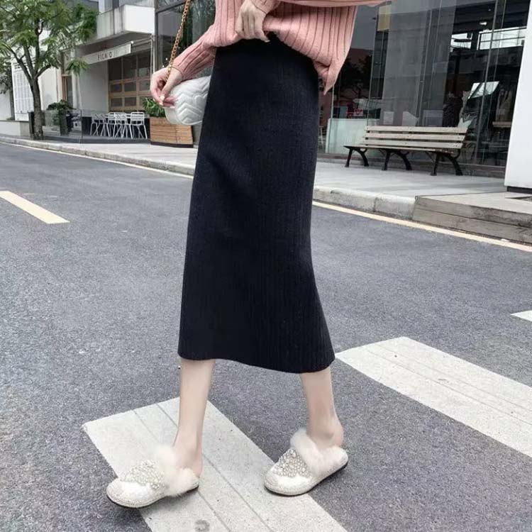 シンプル スカート 秋 細見え リブニ ボトムス スカート 特集 ブラック ベージュ グレー コーヒー ブルー S M L XL