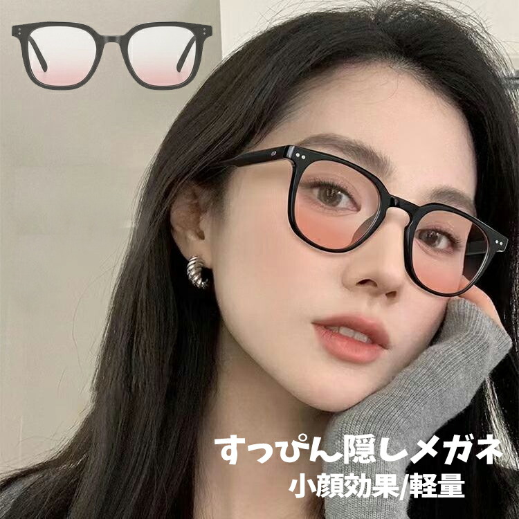すっぴん隠しメガネ チークを塗るようなメガネ 大人気 レディース メイクメガネ 小顔効果 眼鏡 度なし サングラス 軽量 グラス 色付きレンズ かけるだけで完成 プレゼント 血色感 おしゃれ ギフト