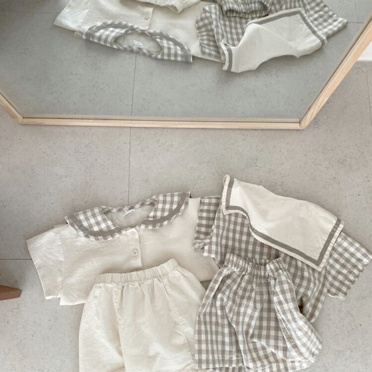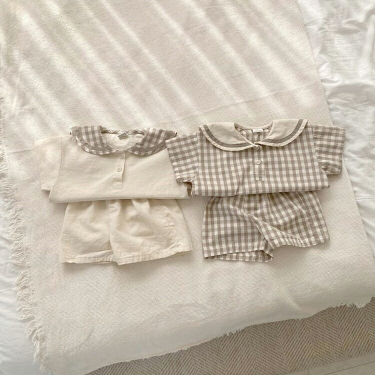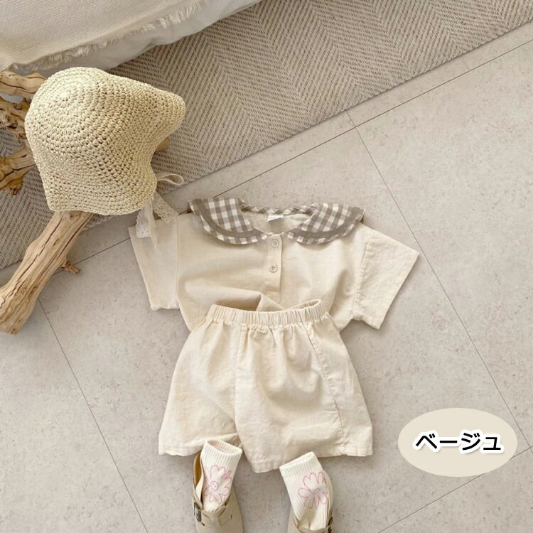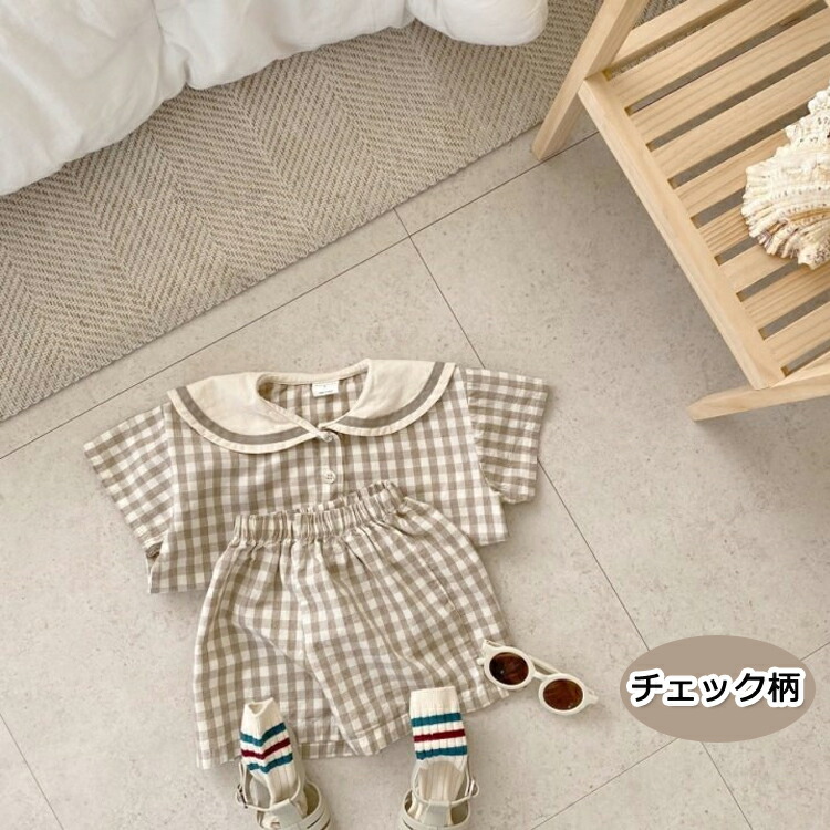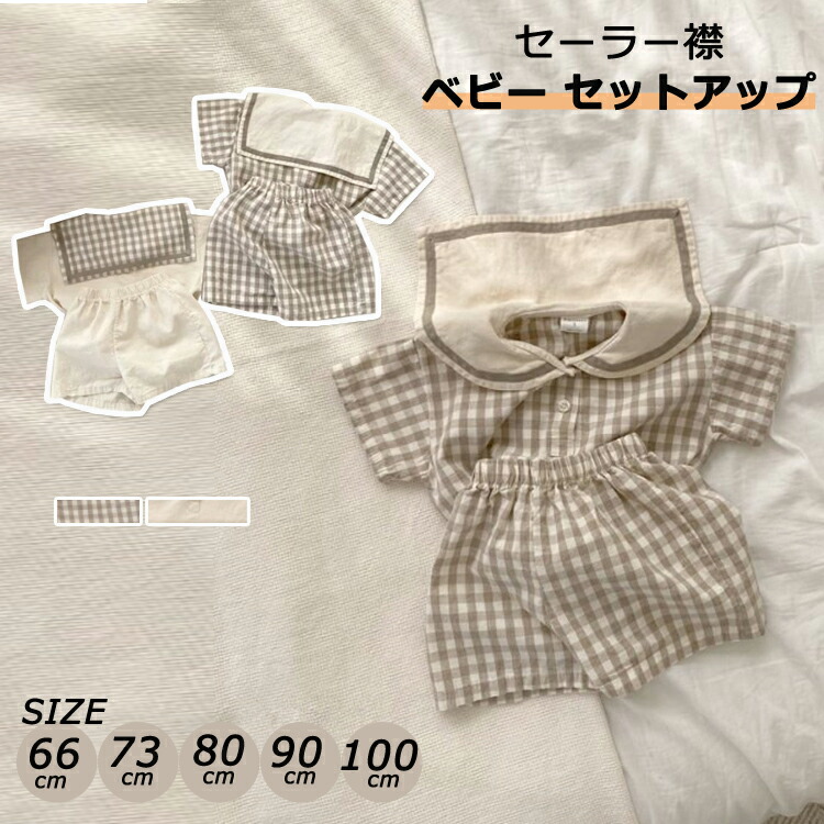 ベビー セットアップ 男の子 女の子 ベビー服 半袖 上下セット コットン 夏 赤ちゃん 子供服 おしゃれ パンツ チェック柄 セーラー 襟 フォーマル プレセント パーティー66cm 73 出産祝い