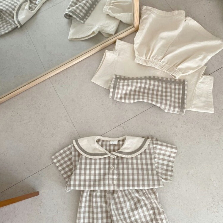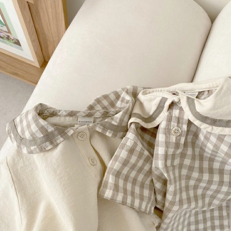 ベビー セットアップ 男の子 女の子 ベビー ベビー服 ファッション 上下セット セットアップ 新作 ベージュ チェック柄 66cm 73cm 80cm 90cm 100cm