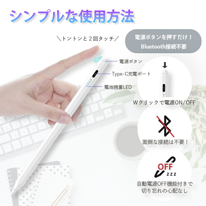 タッチペン iPad専用 タブレット ホワイト ブラック ピンク レッド ライトブルー ライトグリーン