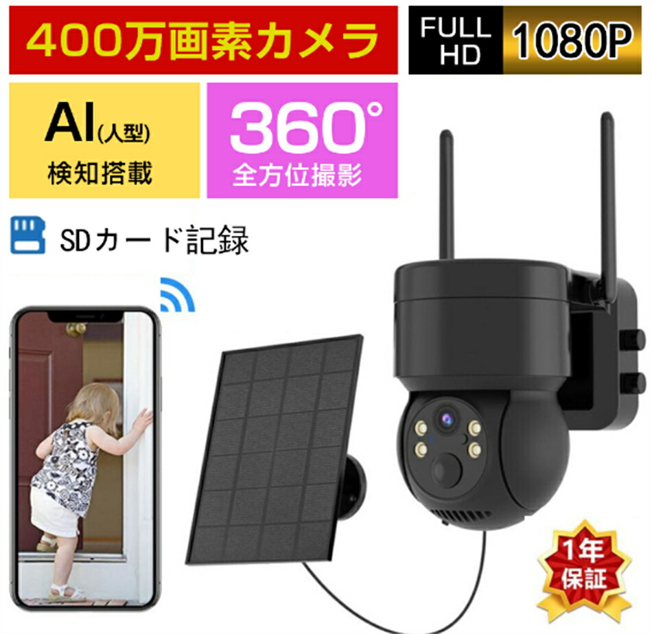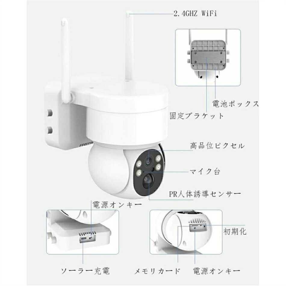 防犯カメラ 屋外 工事不要 ワイヤレス ブラック ホワイト