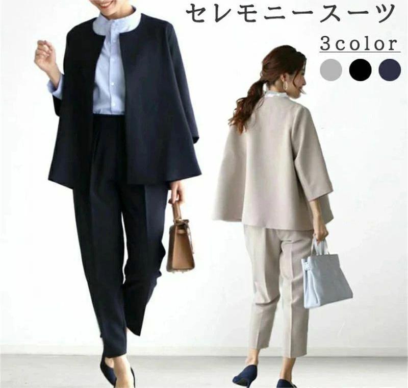 セレモニースーツ レディース セットア スーツ セットアップ パンツスーツ 人気 ブラック ネイビー ベージュ S M L XL