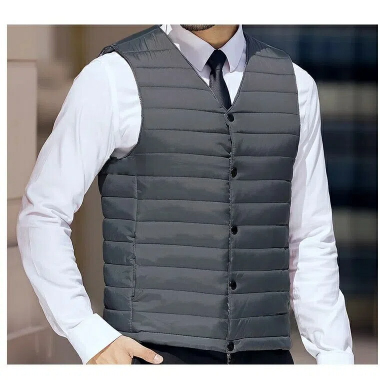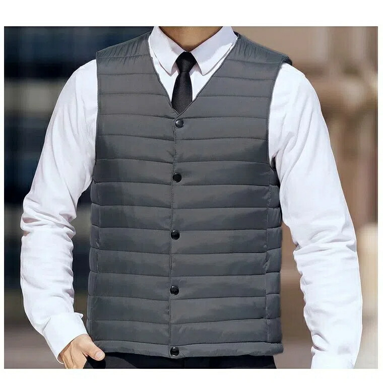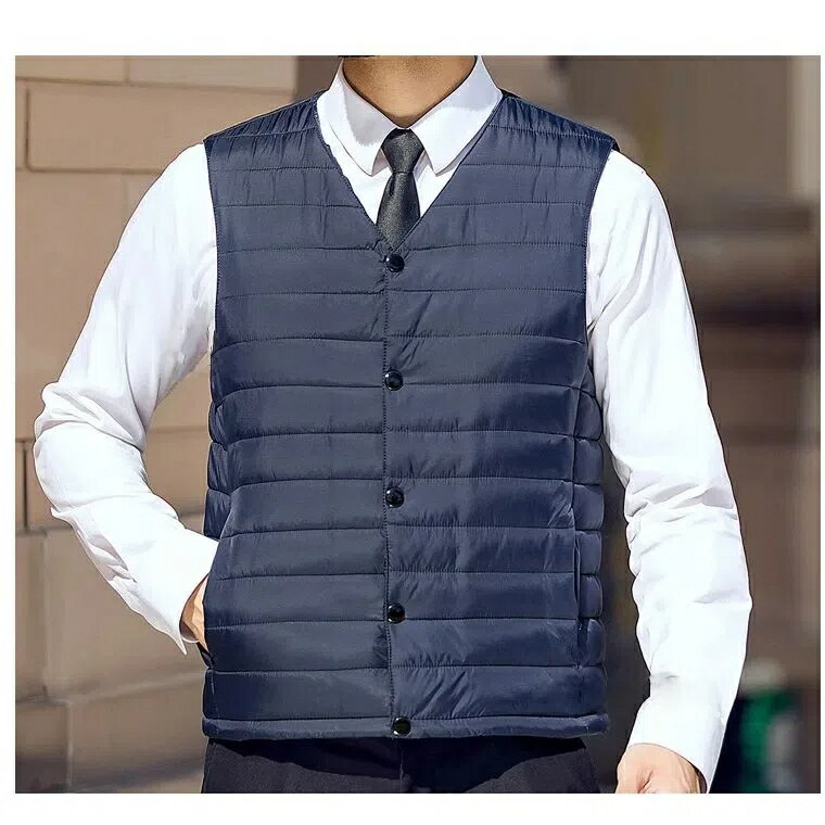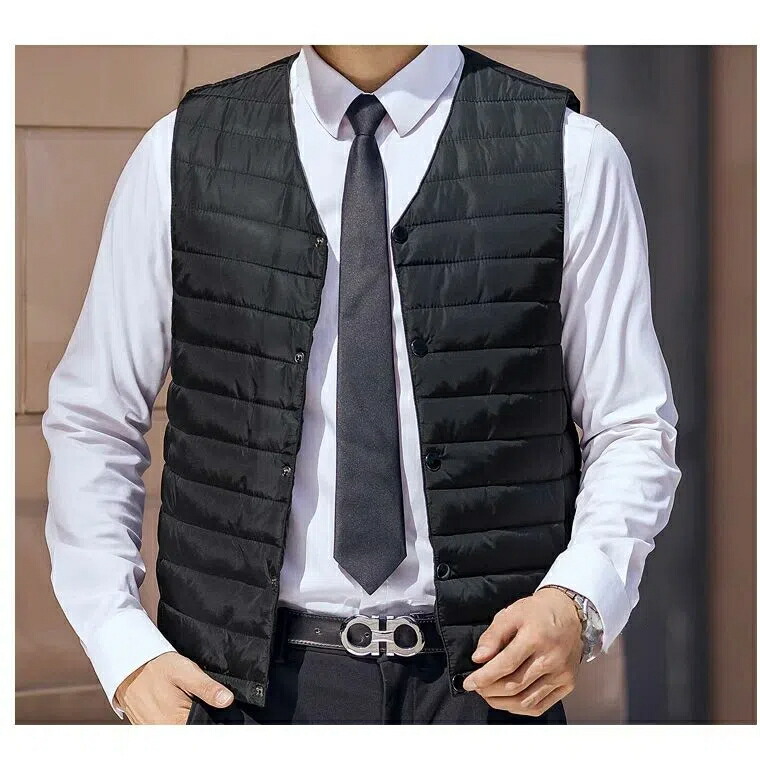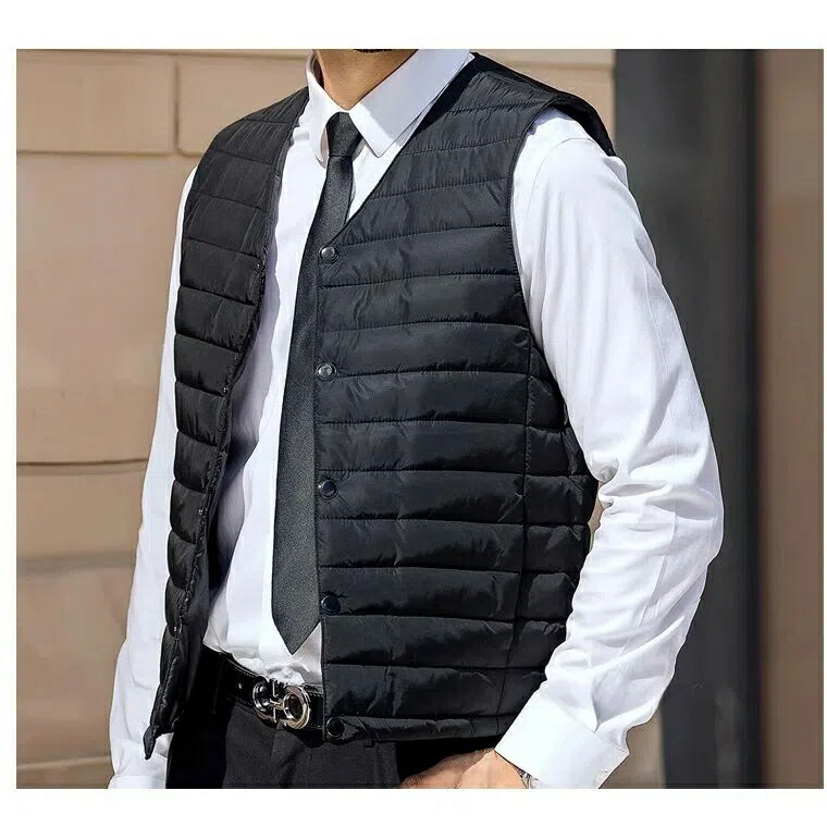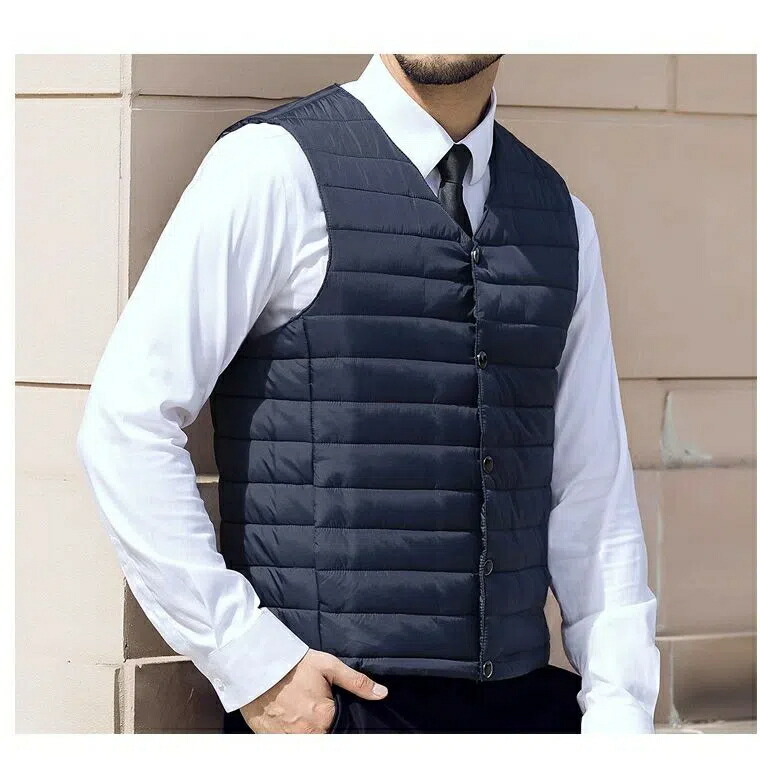 カジュアルにもスーツにも使える薄手中綿ベスト。