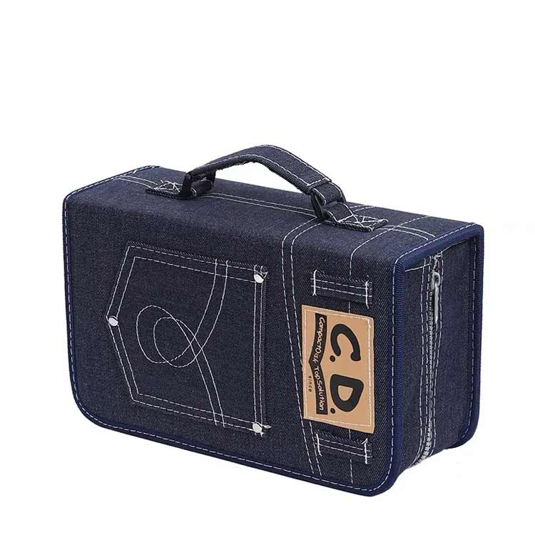 丈夫なデニムケースが、CD/DVDをしっかり保護します。
