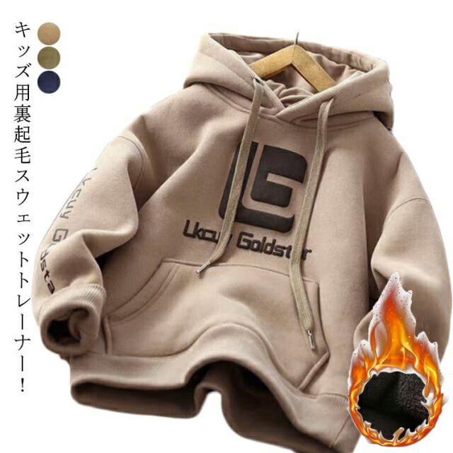 裏起毛 キッズ トレーナー 子供服 ベビー 男の子 長袖 トップス フード付き パーカー スウェット 裏ボア 暖かい 防寒対策 保温 無地 長袖トレーナー プルオーバー ジュ 子ども