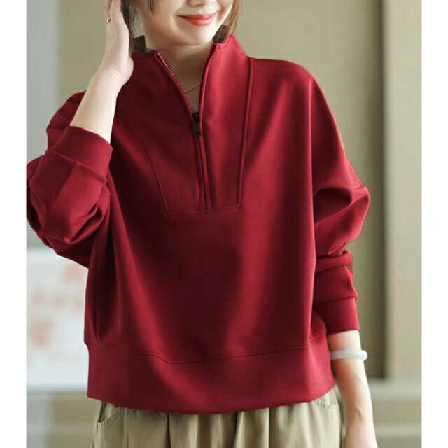 ファスナー 無地 長袖 スウェット パ レディースファッション 早い者勝ち コーヒー ブラック レッド ベージュ M L XL 2XL 3XL