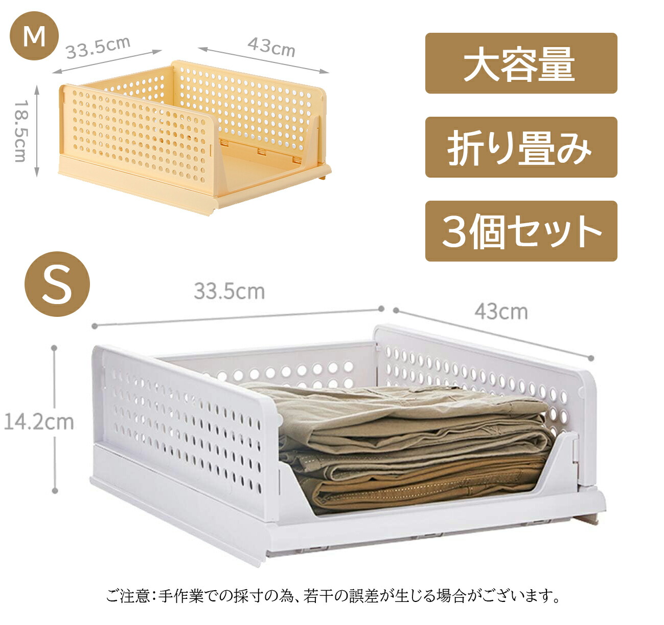 衣装ケース 引き出し クローゼット用 ホワイト イエロー ピンク グリーン S/33.5*43*14.2cm M/33.5*43*18.5cm