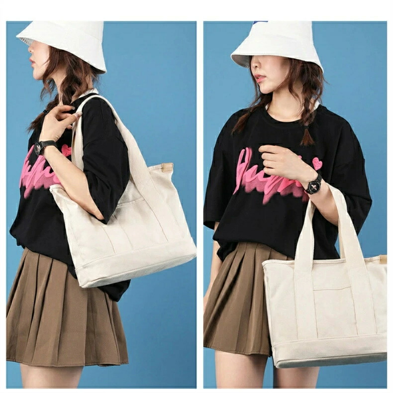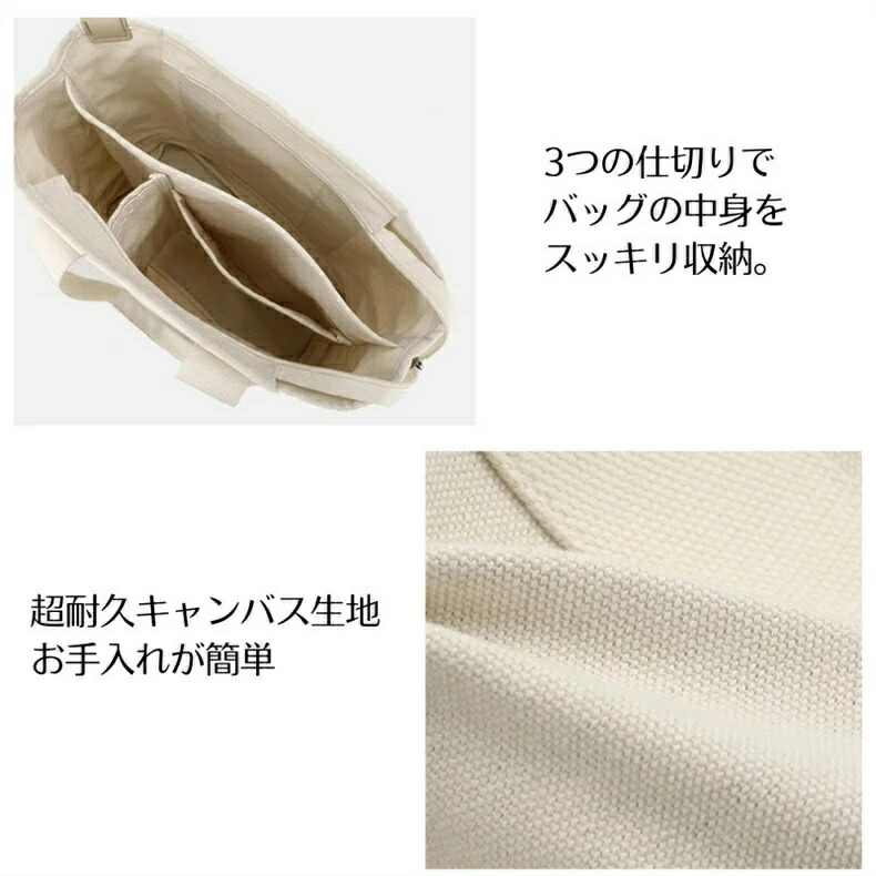 トートバッグ 帆布 BIGトートバッグ キャンバス 大きめ ファスナ付き 仕切りトート A4 無地 シンプル 肩掛け 通勤 通学 旅行 アウトドアベスト ママバッグ 軽量 大容量 ベーシッ コンパクト