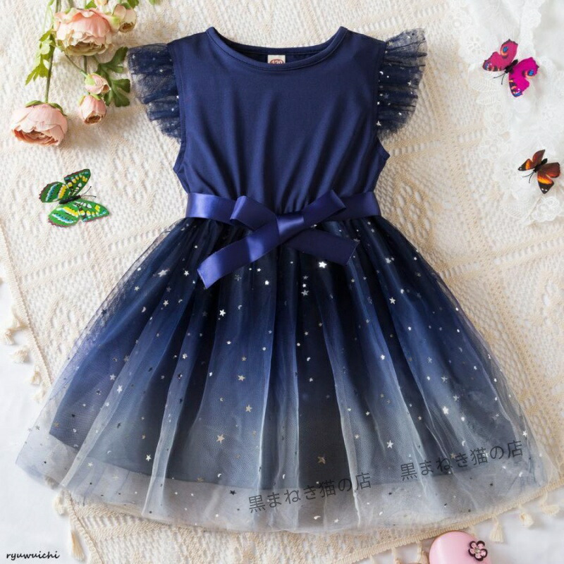 ワンピース キッズ 女の子 ノースリーブ 星 チュール フリル レース 春 夏 かわいい おしゃれ 100cm 120cm 130cm 1 110cm