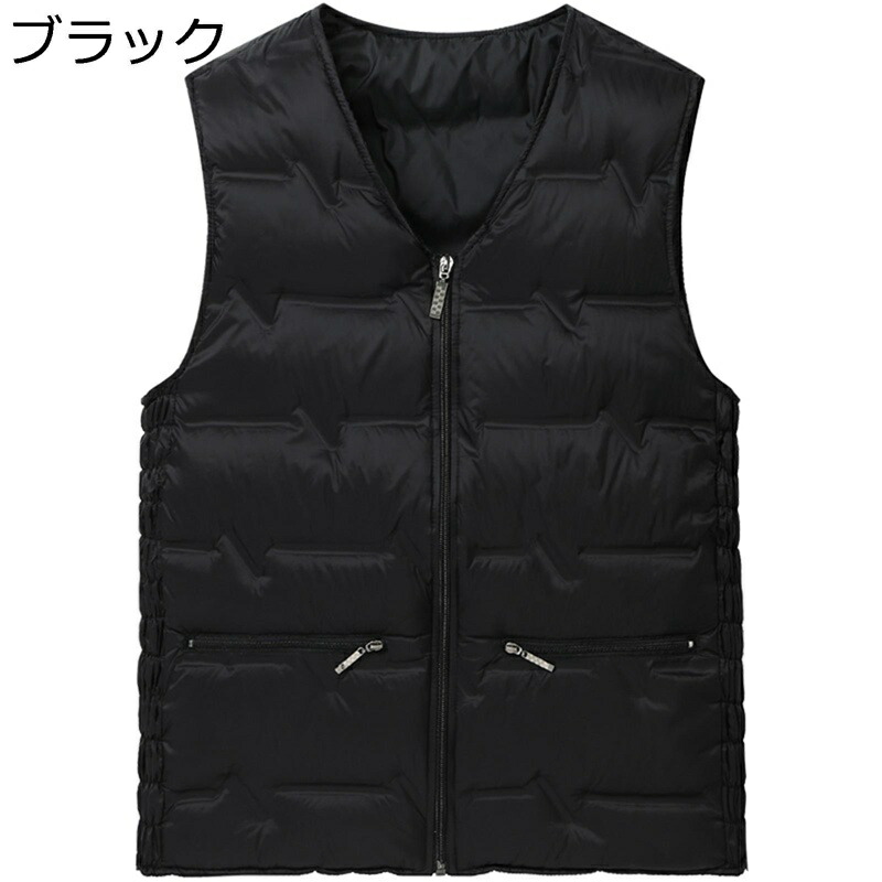 Vネック お年寄り用 ダウンベスト ジッパーポケット スリム メンズ インナーベスト ノースリーブ チョッキ 防寒ベスト 秋冬用 薄手 無袖コート 軽量 暖かい 普段着 お散歩 オールマイティ