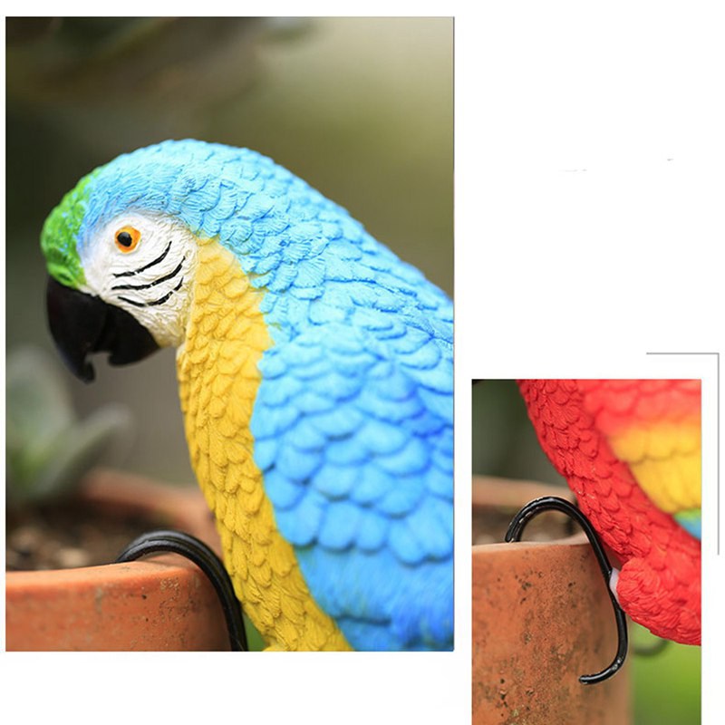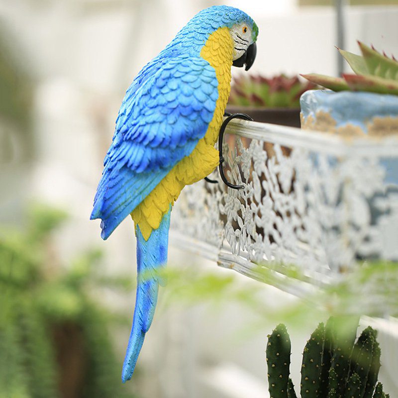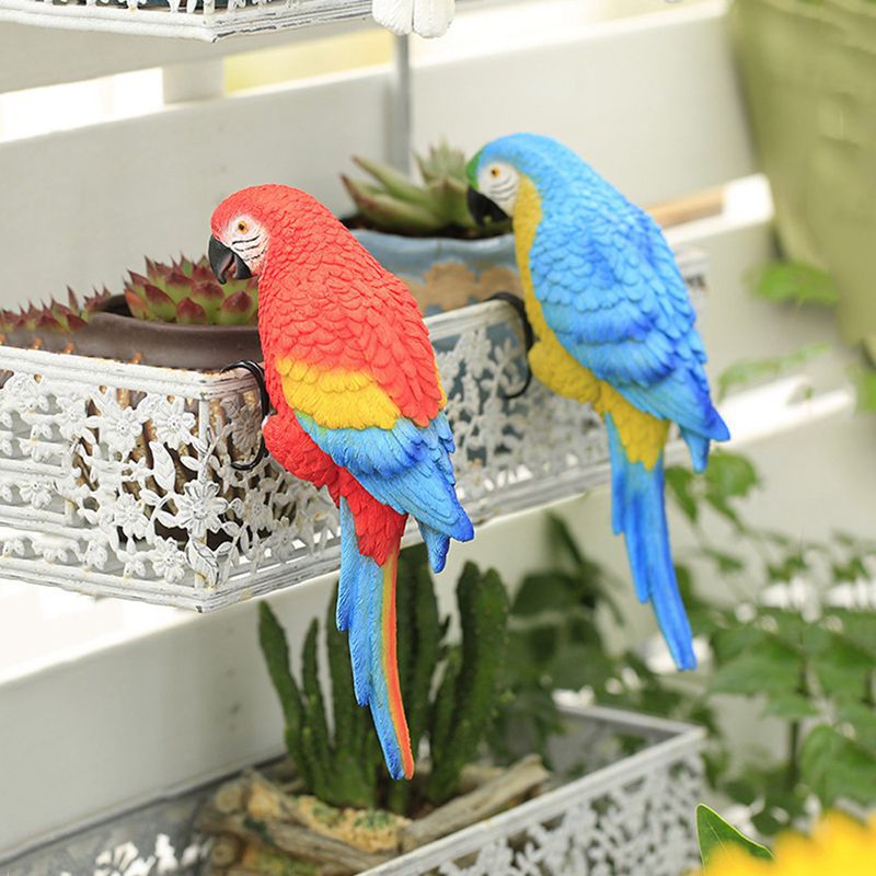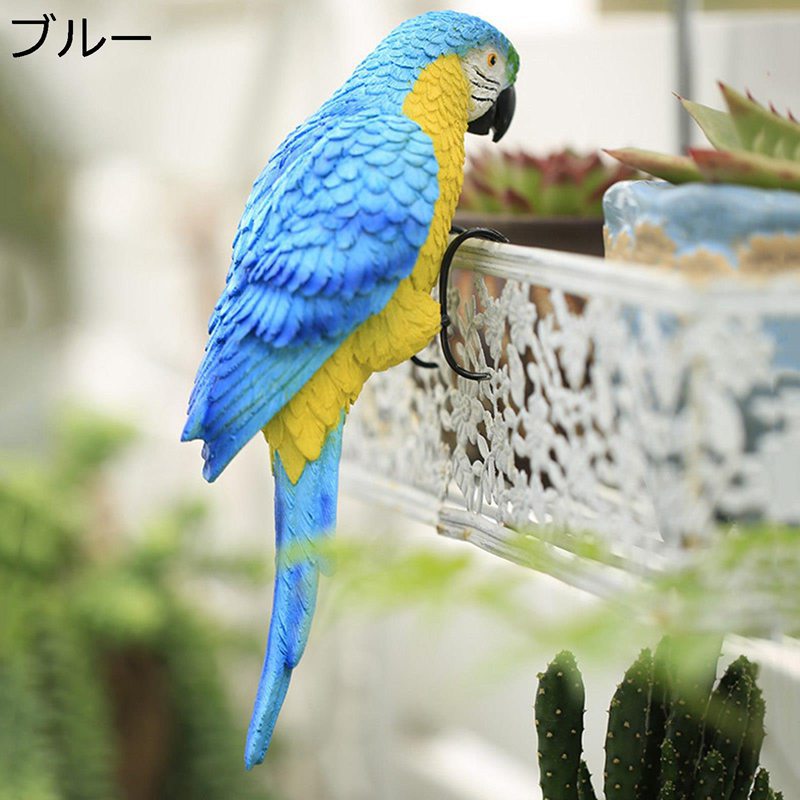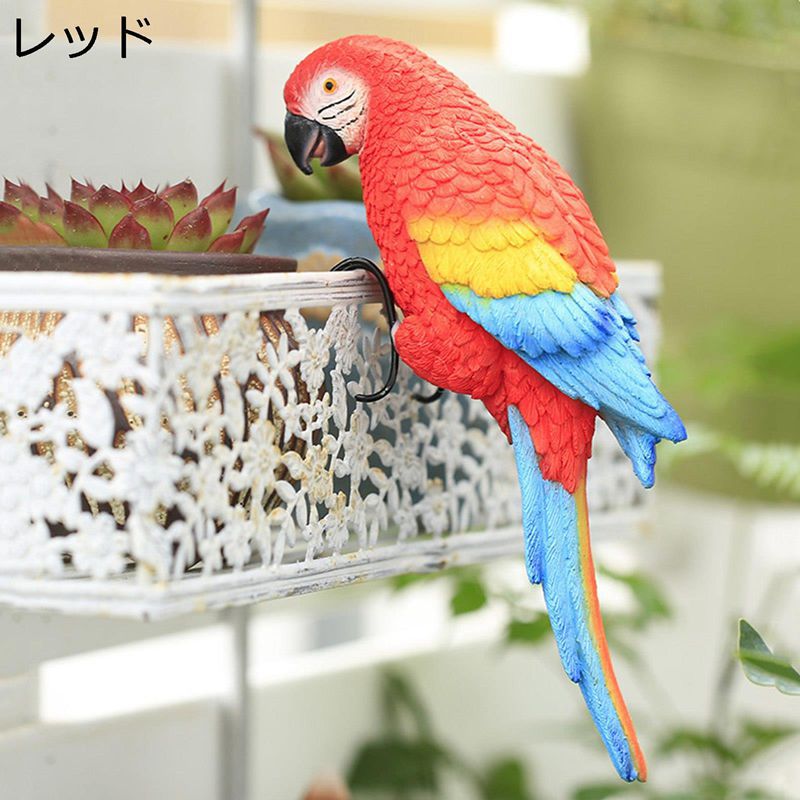 ガーデンオーナメント インコ置物 本物 イエロー レッド ブルー ライトブルー