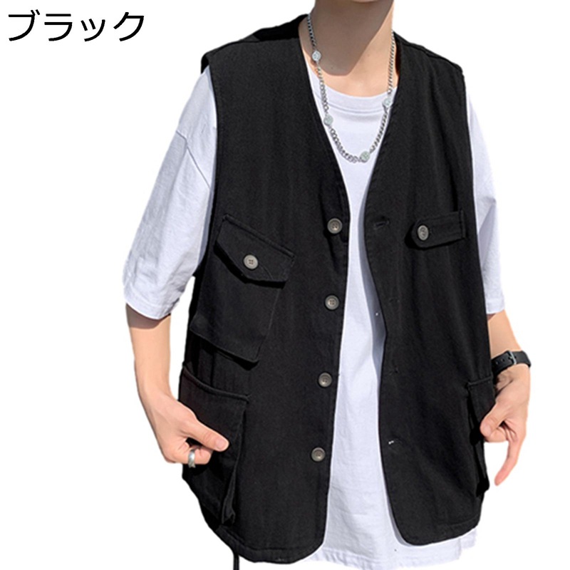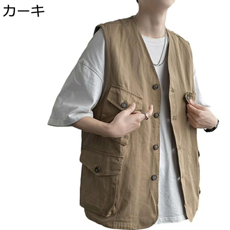 チョッキ メンズベスト マルチポケット トップス ベスト ジレ 豊富 L M XL 2XL ブラック カーキ グリーン