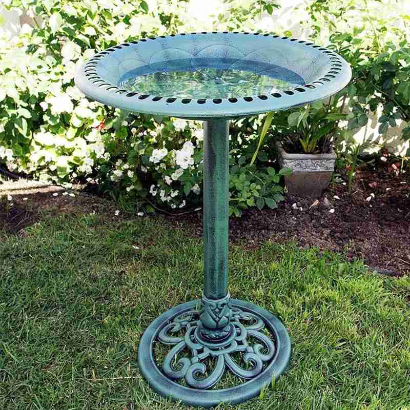 ヨーロッパのロイヤルスタイル:ブロンズの緑青とベースのデザインが美しいバードバスは、庭やテラスに上品さを与えます。