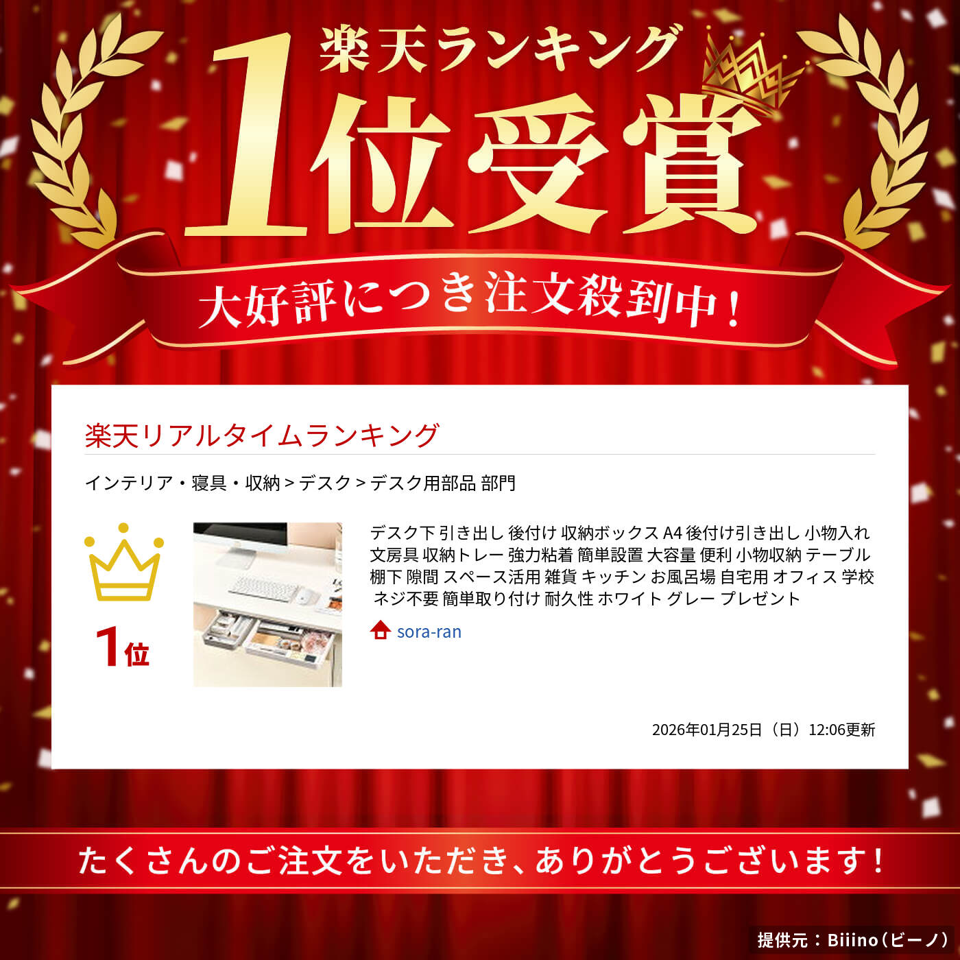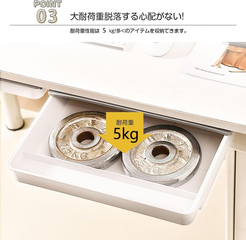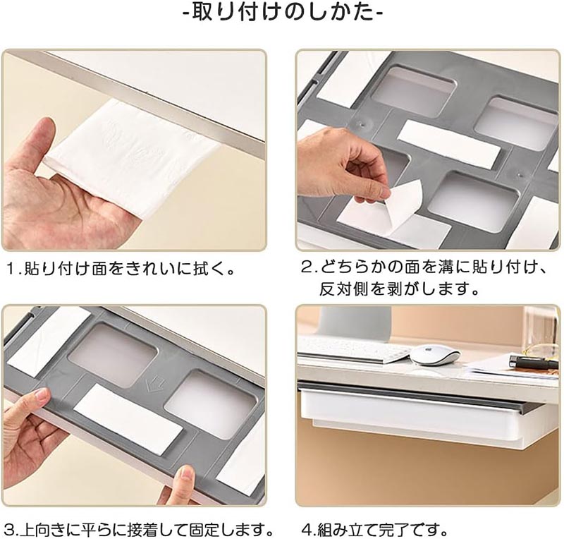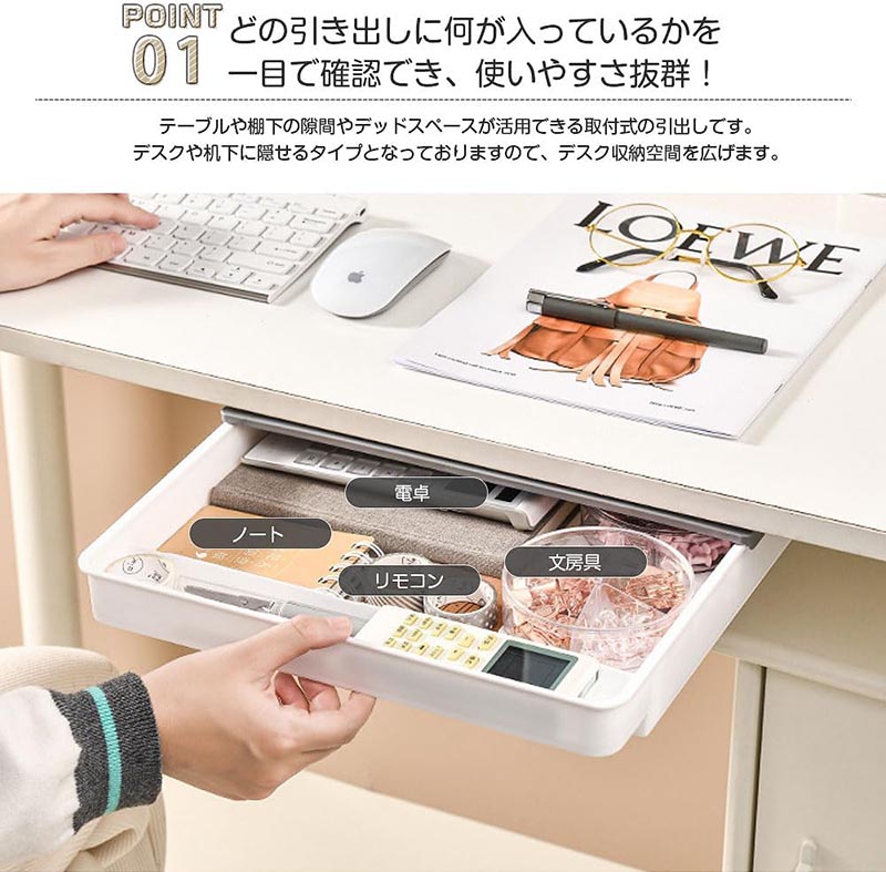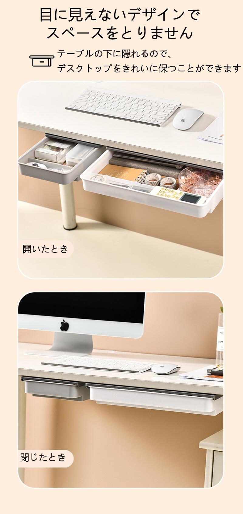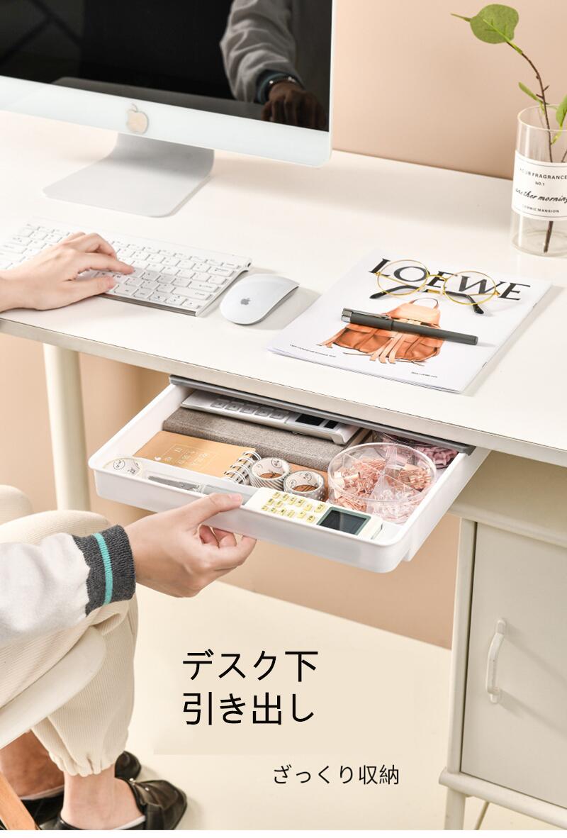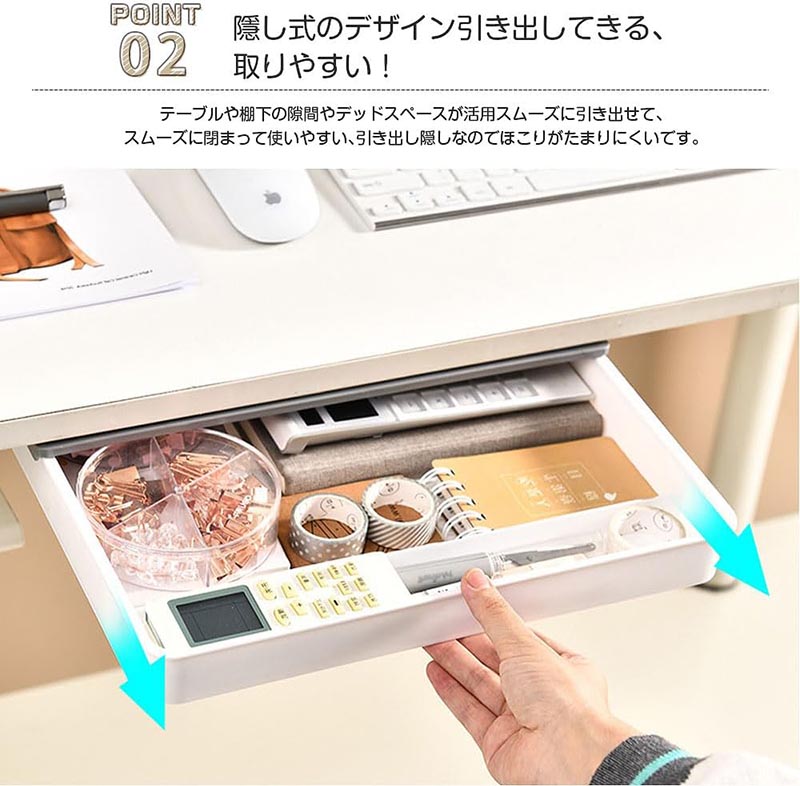 デスク下 引き出し 後付け 収納ボックス A4 後付け引き出し 小物入れ 文房具 収納トレー 強力粘着 簡単設置 大容量 便利 小物収納 テーブル 棚下 隙間 雑貨 キッチン お風呂場 スペース活用