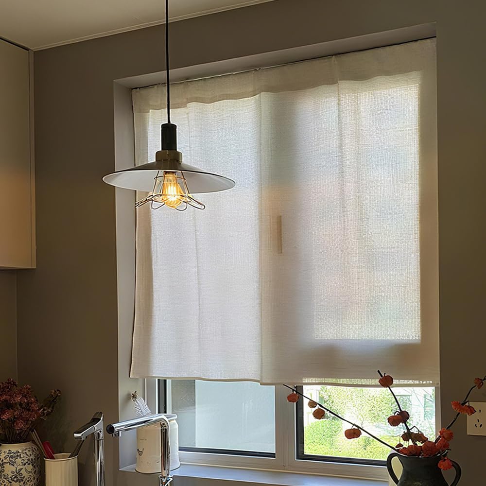 【柔らかいカーテン】これらのハーフウィンドウカーテンは、綿のリネンテクスチャーの生地で作られています。