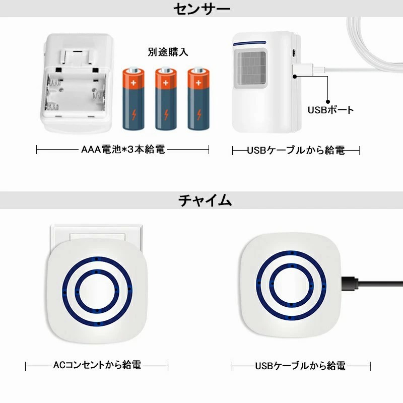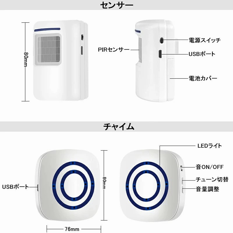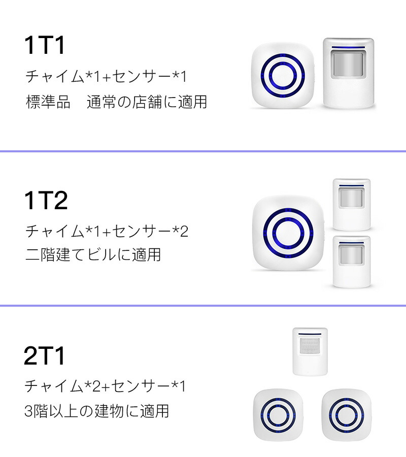 人感センサー チャイム 店舗 ワイヤレ 1T1 1T2