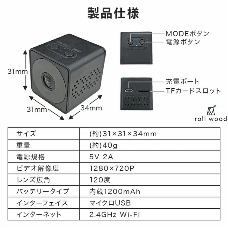 防犯カメラ 小型カメラ 小型 家庭用 屋内 屋外 監視カメラ 工事不要 長時間録画 人感センサー 人体感知 動体検知 暗視 赤外線 自動録画 ループ録画 上書き録画 車庫 簡単操作 かんたん設 駐車場