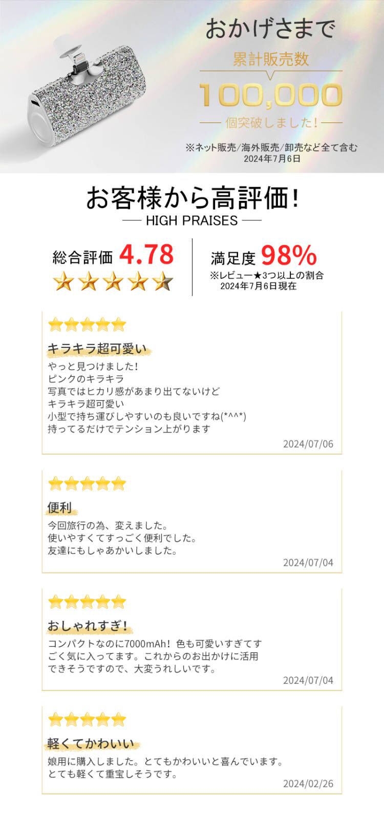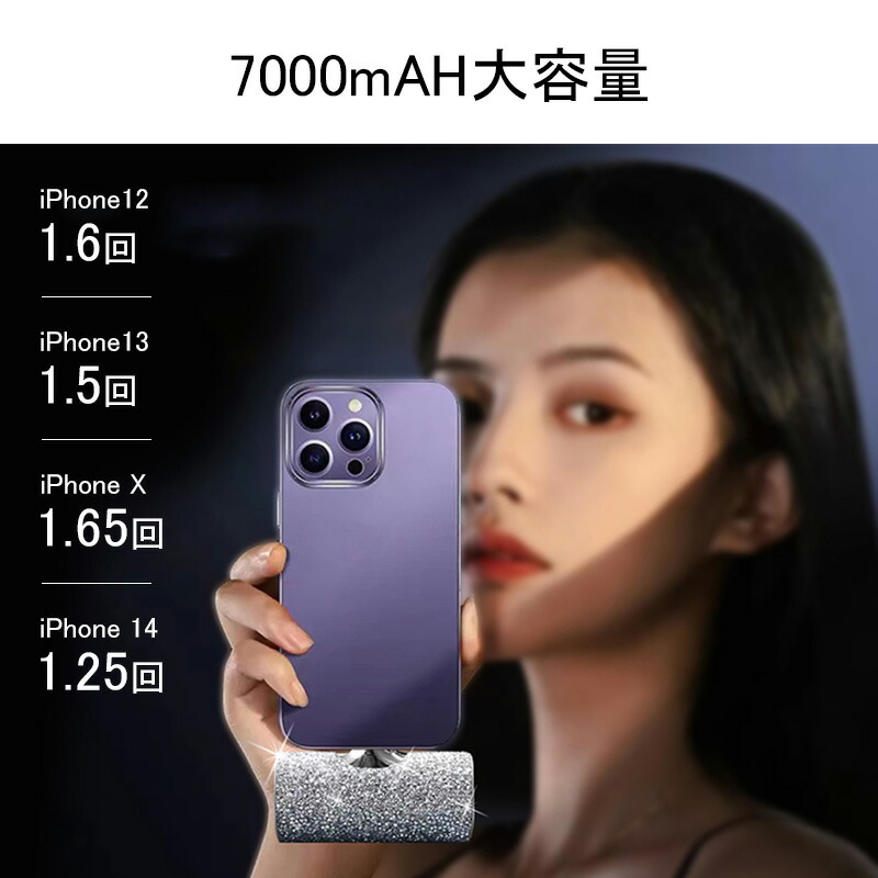 モバイルバッテリー キラキラ iPhone 軽量 超小型 可愛い ワイヤレス 7000mAh Lightning コネクター内蔵 ケーブル不要 コードレス コンパクト PSE認証済 旅 オシャレ
