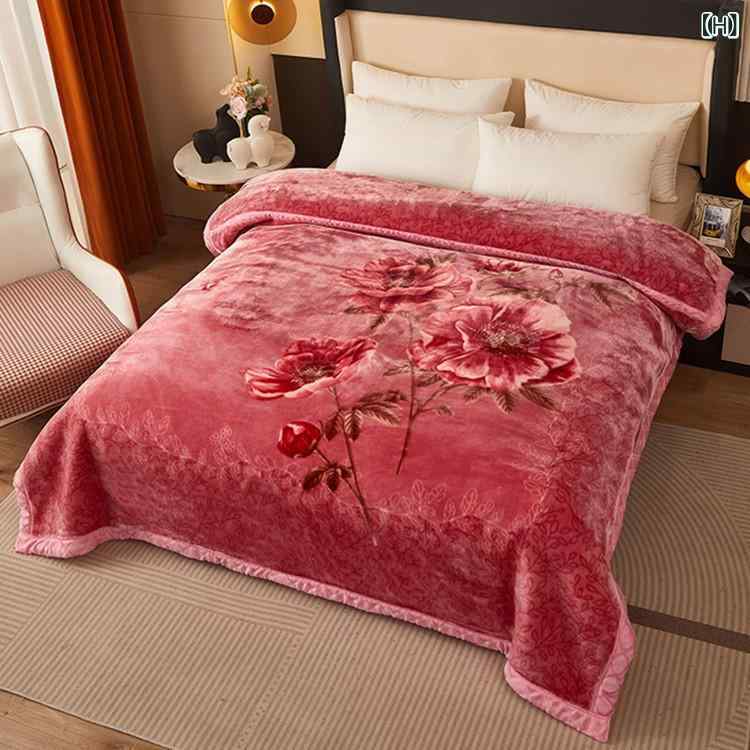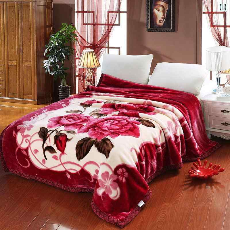 毛布 ラシェル毛布 ダブル レイヤー 厚手 ポリエステル 花柄 結婚祝い ブランケット 冬 暖か 大判 140 190 150 180 220 230cm 200