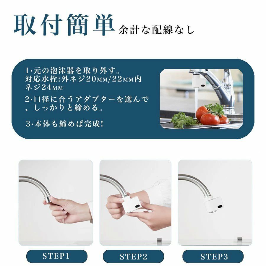 検索用キーワード:自動水栓 2023年最新型 センサー蛇口 後付け 電池内蔵式 タッチレス水栓 取付型 USB充電式 IPX6防水 節水 赤外線センサー キッチン 洗面所 トイレ 浴室 M22/M24規格 USBケーブル付き